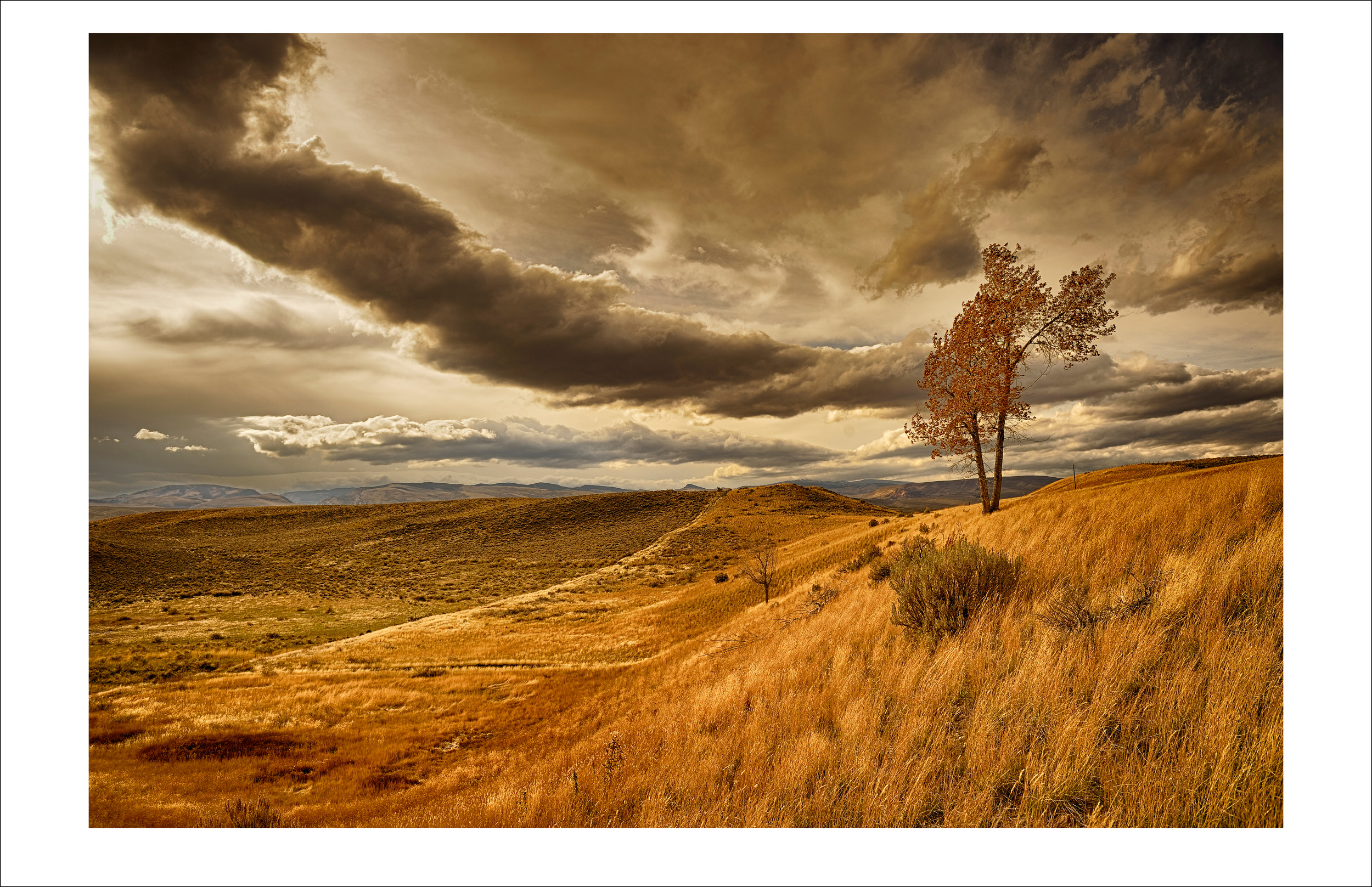 Captured in October 2016 on the quiet road to Grand Teton National Park, this photograph reveals the vast and poetic beauty of Wyoming’s autumn landscape. Golden grasses ripple under a brooding sky, while a lone tree stands resilient against the sweeping wind — a symbol of endurance and solitude in nature’s grand expanse. The interplay of light and shadow evokes both calm and drama, drawing the viewer into the timeless rhythm of the American West.