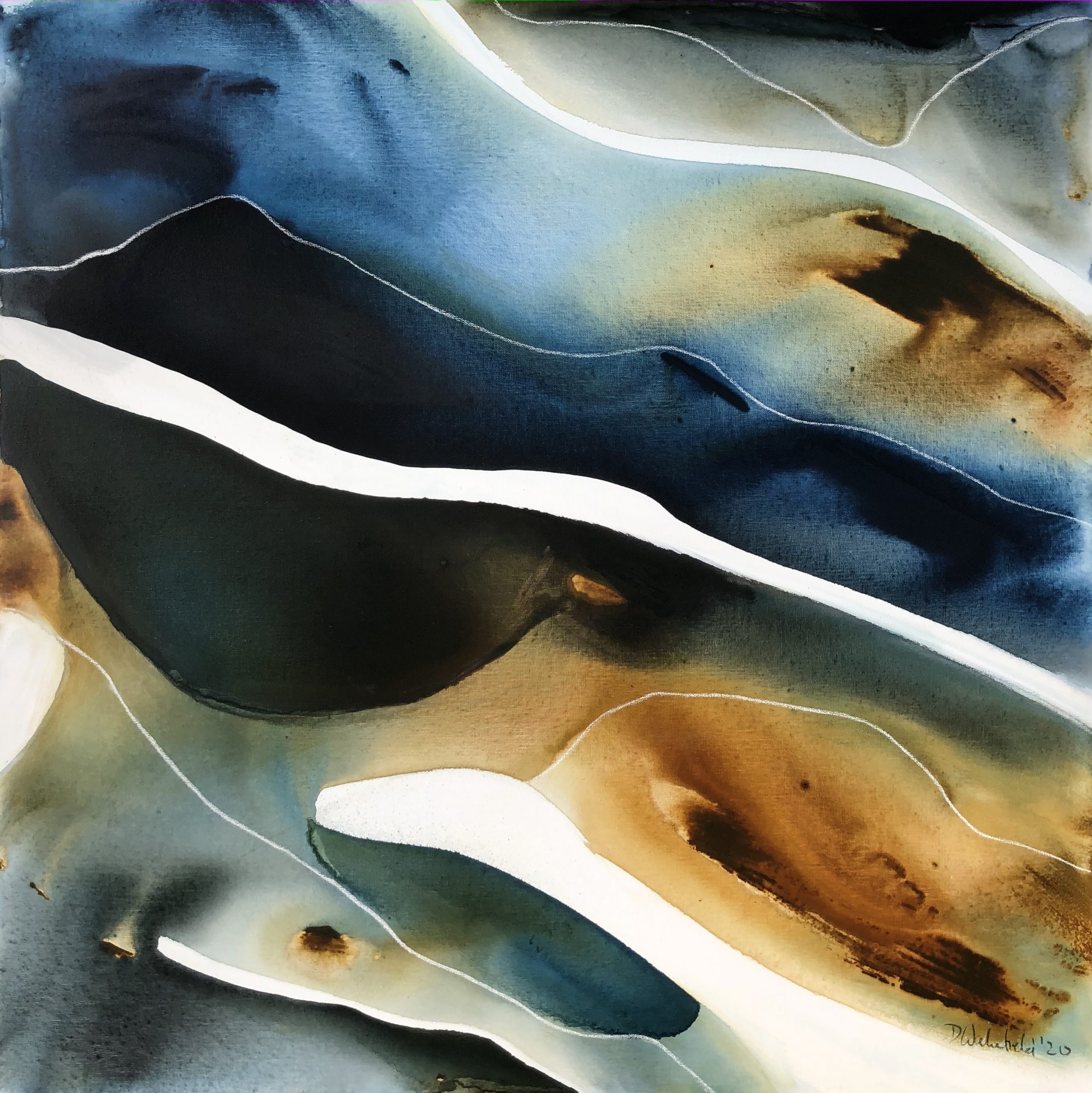 Rainbow Beach 3 by Dinah Wakefield is inspired by the light, the colours and the natural beauty of the Noosa region of Australia. “What I love most about Noosa is the interplay of light. From the oceans to the clouds, to the river estuaries and the hinterland, this canvas unfolds before me every day and finds expression in my paintings”.