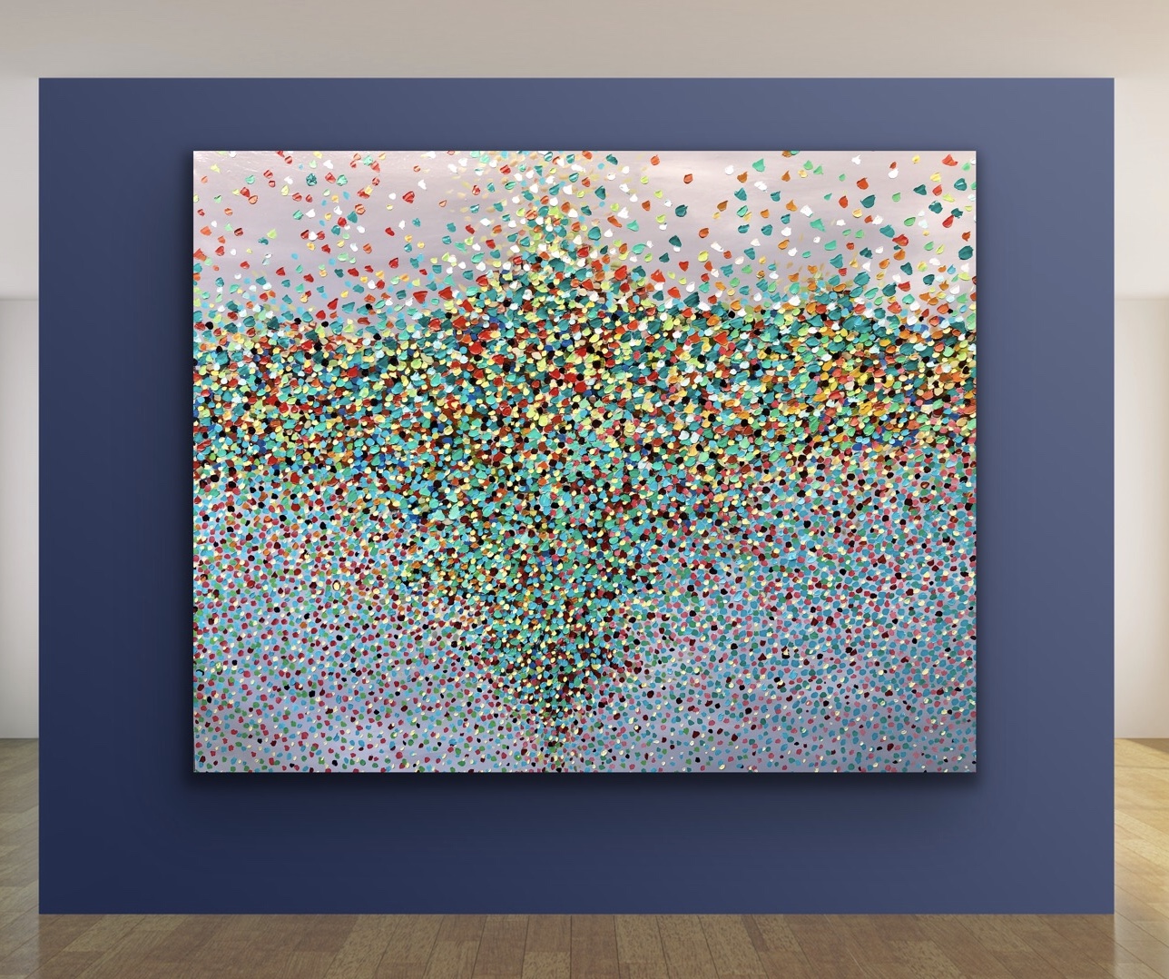 Rainbow bouquet is from my petals series painted in thick oil paint with a pallet knife and a brush. This artwork was inspired by petals falling on the landscape. I wanted to capture the richness of colour and the beautiful rhythms of the petals  falling on the landscape . Hope with this s work it makes the viewer feel very peaceful and tranquil. This painting is signed and dated 2019 at the back of the painting and comes with a certificate of authenticity.I also love doing commissions. Thanks for looking at my artwork.