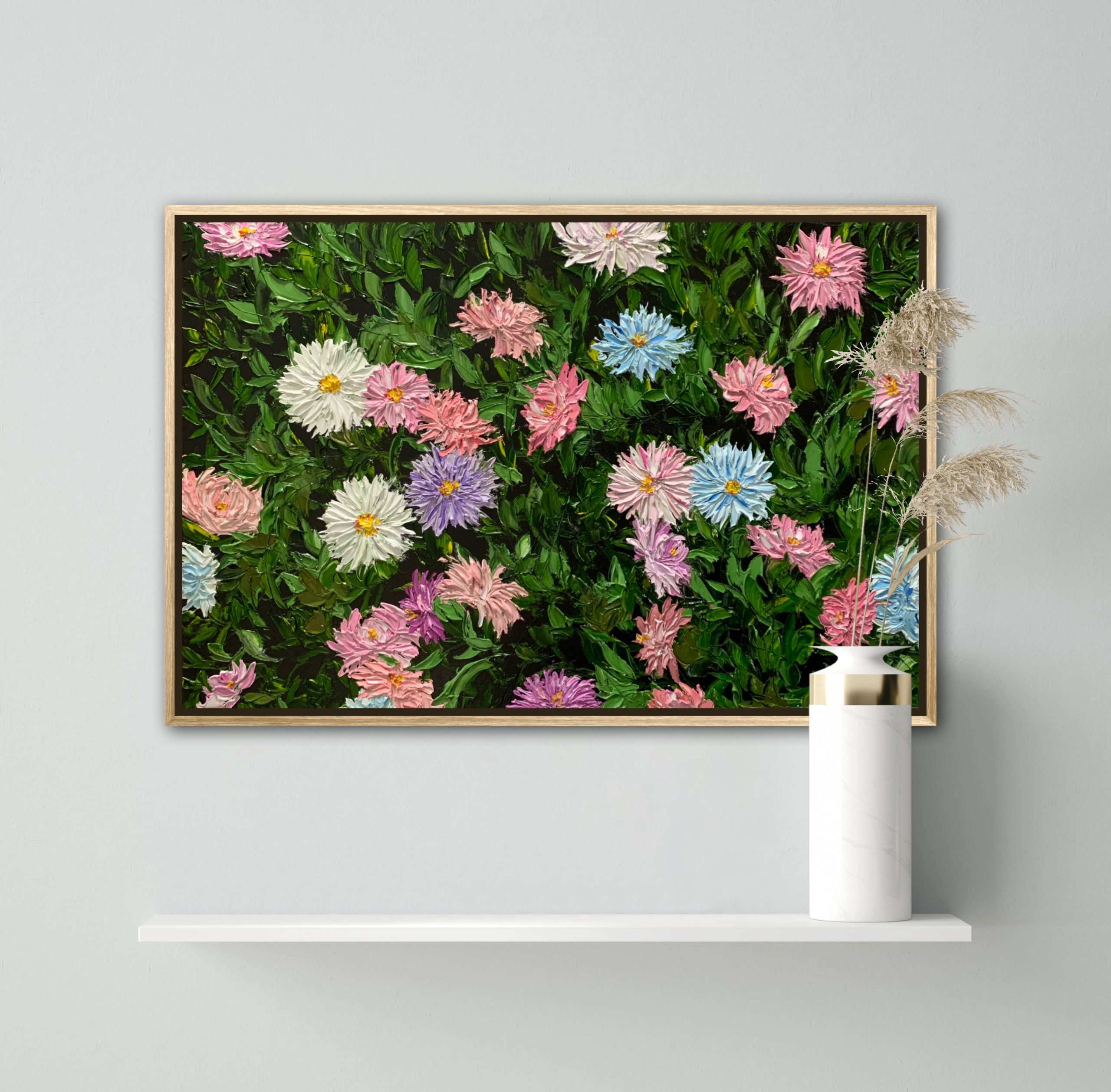 This artwork is made using impasto technique with palette knife and is layered with thick oil paint to provide textures and sensory appeal to the painting.