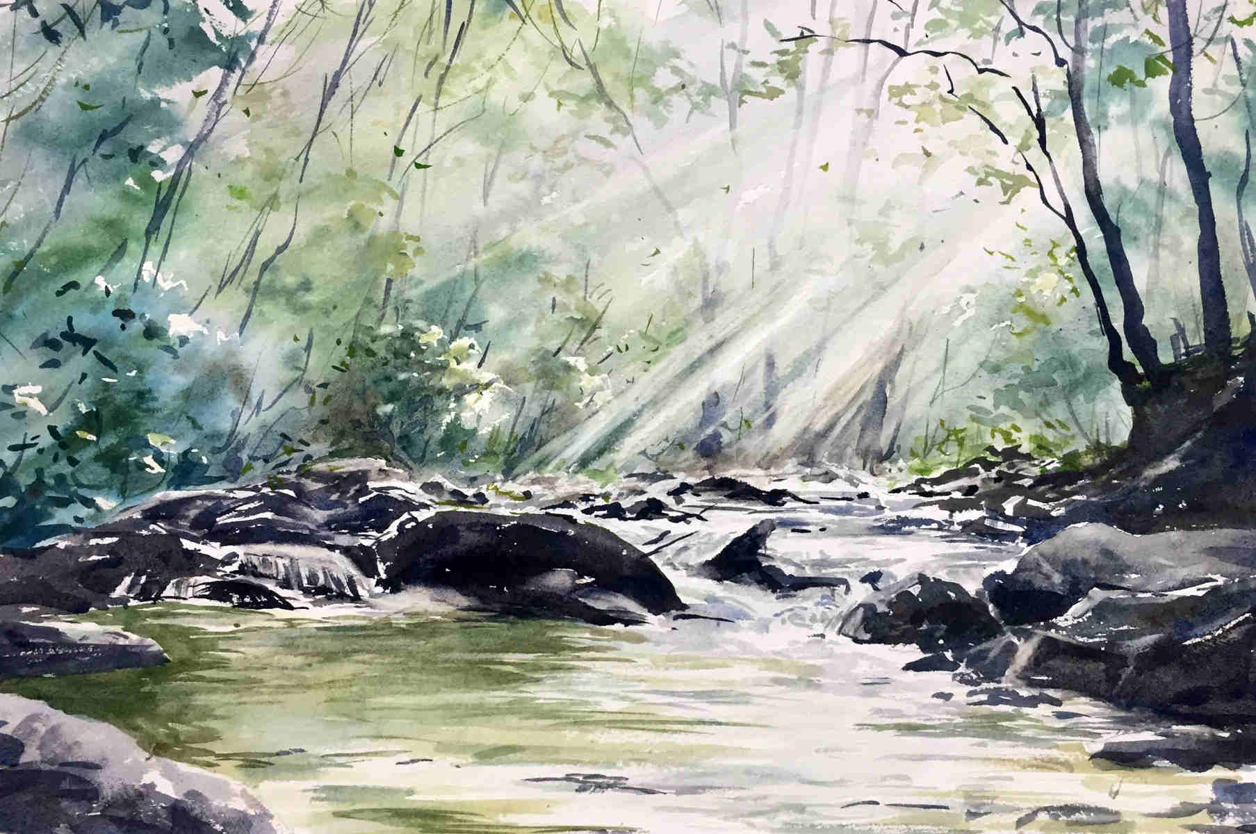 `Morning Light` – landscape watercolour painting