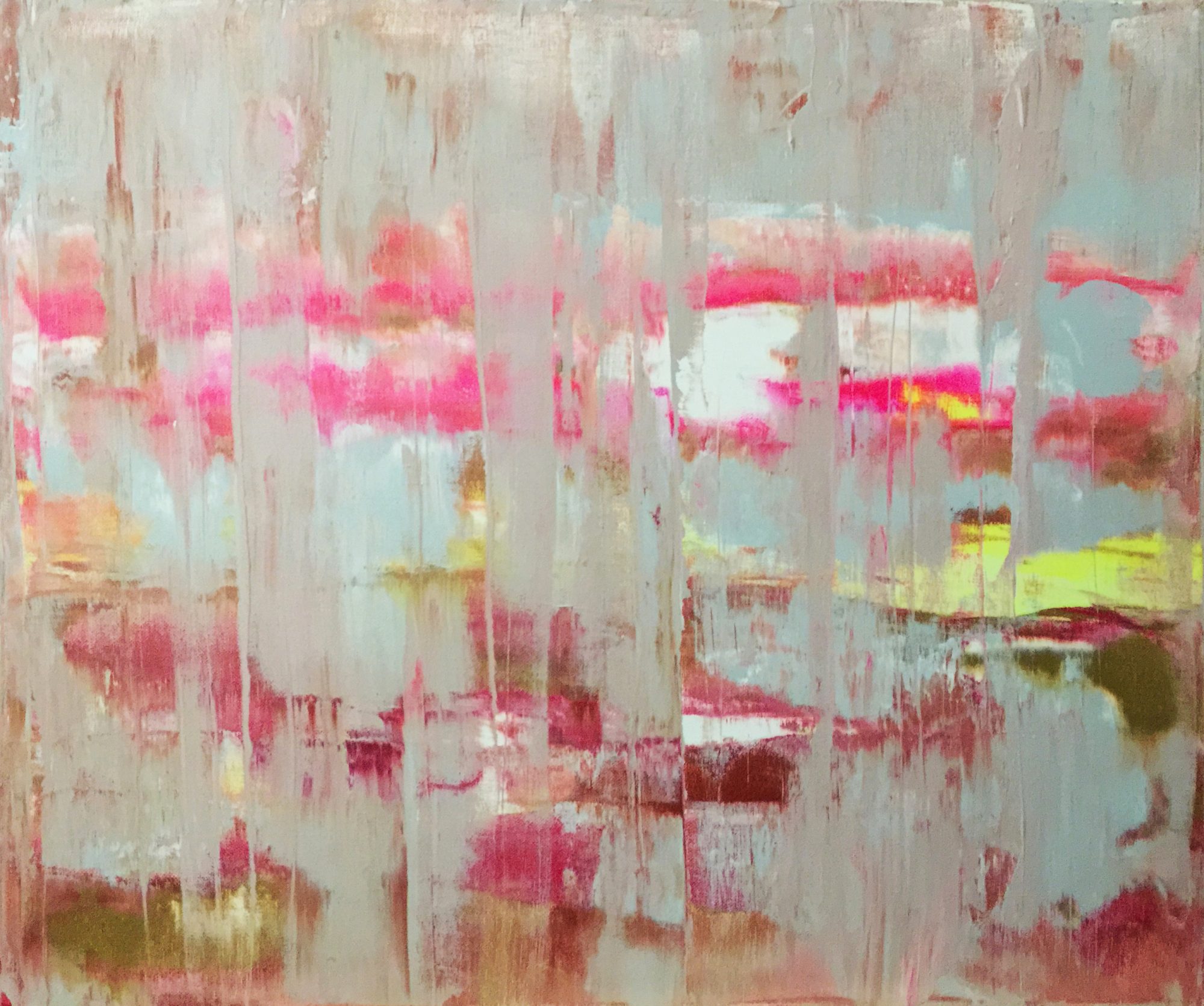 This work was inspired by a heavy storm during a beautiful pink sunset. The rain was so heavy it was very difficult to see anything. I like the subtle feeling of this vision as it makes me feel separated from the object, yet at ease.