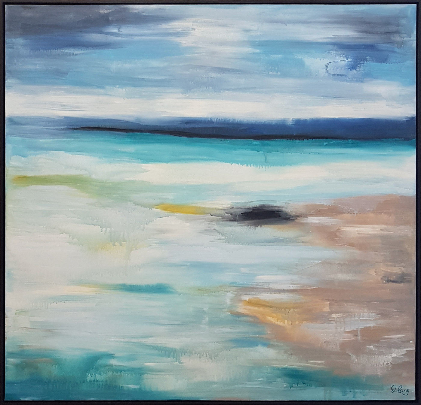 Rainy Day Abstract Bay by Deborah Lang – Create the calm relaxed Coastal style in your home with this beautiful piece of art ‘Rainy Day Abstract Bay’. Framed Beach Abstract on Canvas.