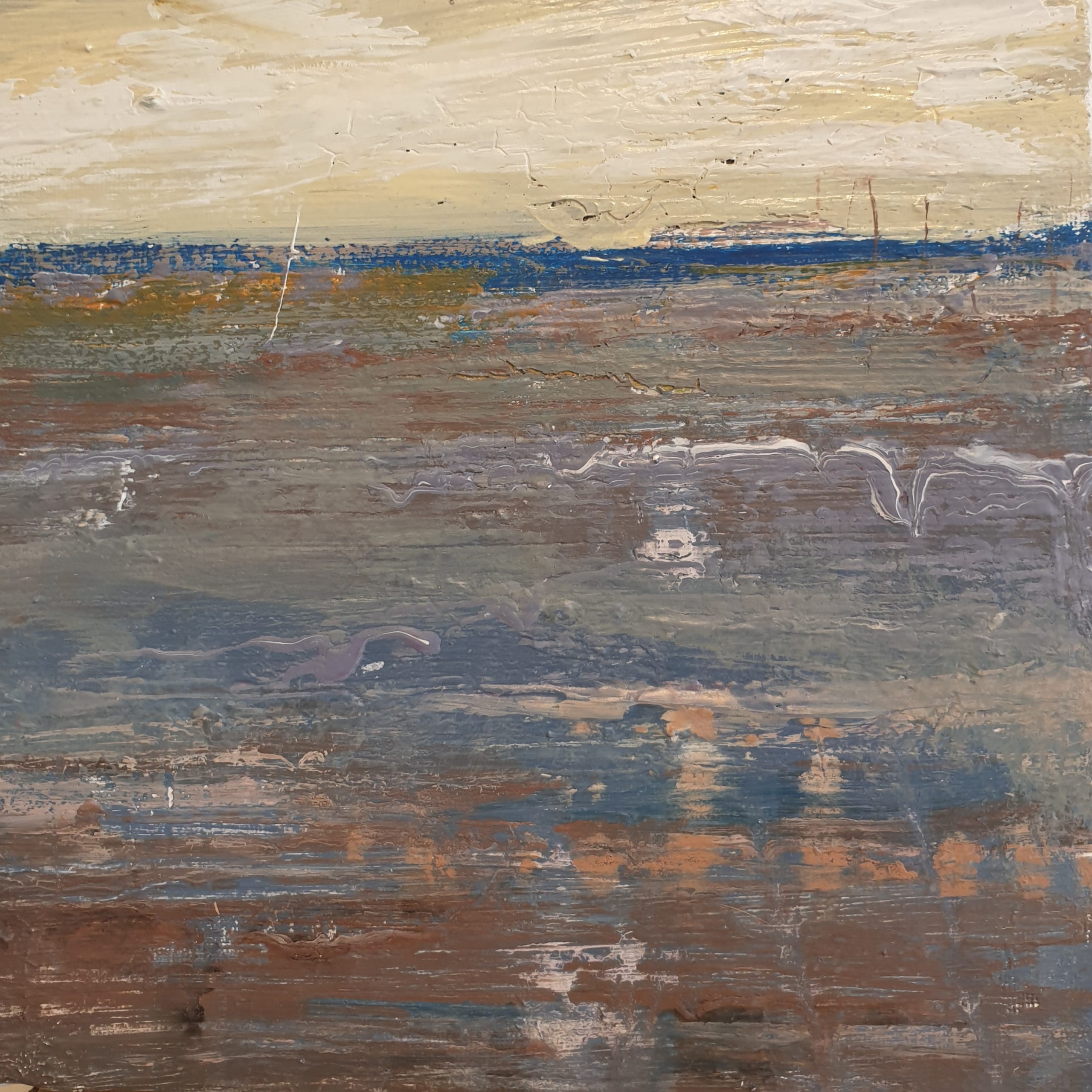 Rare Earth by Andrea Edwards – Â is a rustic and atmospheric abstract landscape painting. This original on canvas has been inspired by road trips; seeing plenty of sky, cloud and land!