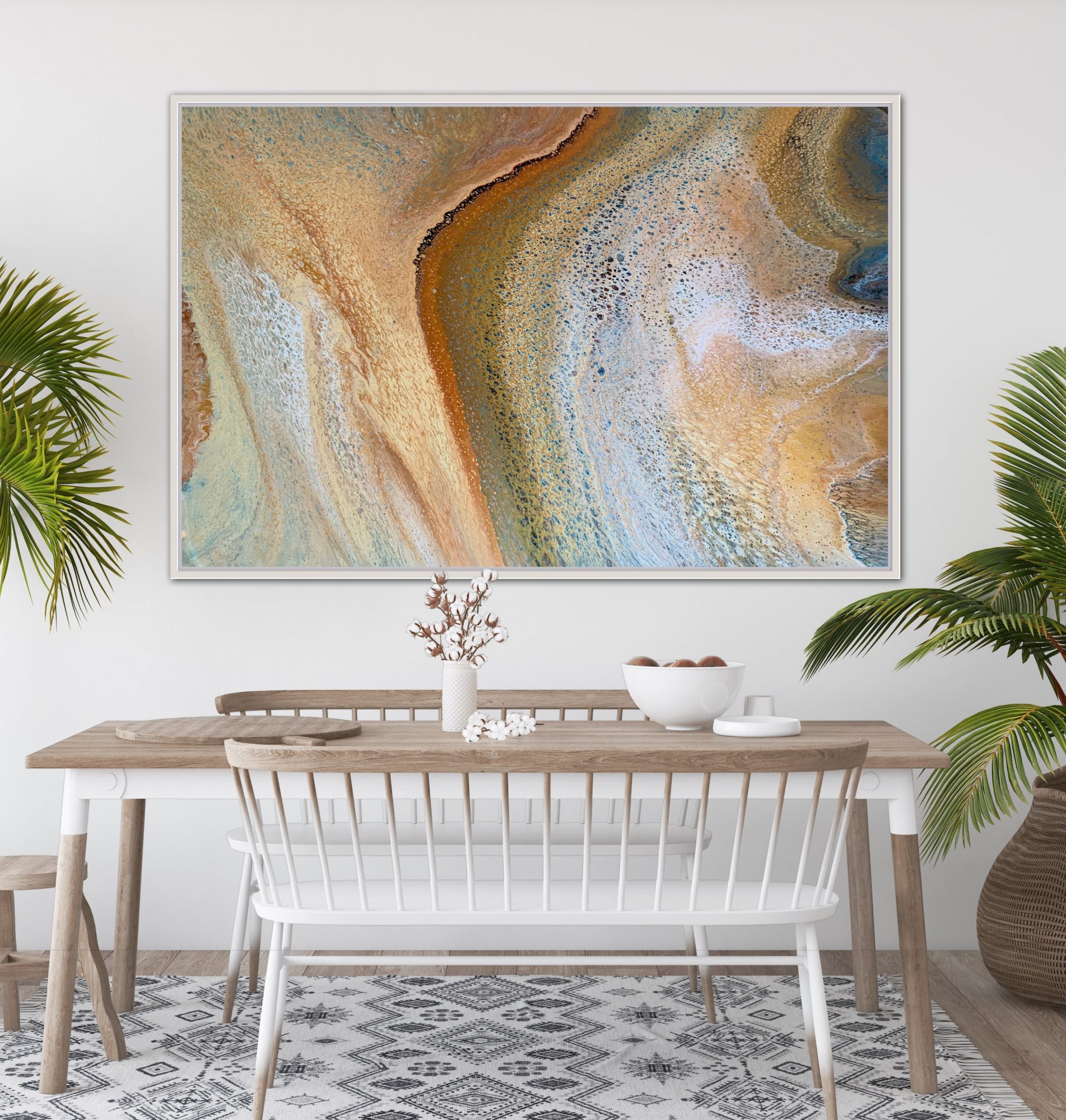 ‘In situ’ photos have been included to help with visualisation of the artwork in your home. In situ photos provided were created using the ArtStage app and may not be perfectly to scale. This being said, every effort has been made to represent the size of the art accurately but please read the dimensions of the artwork to ensure it fits your space perfectly. Where provided, photos of framed art are for illustrative purposes only.