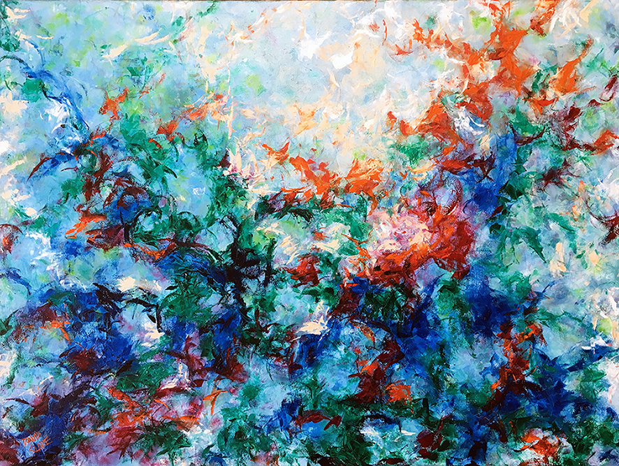 Sometimes I just play around with paint and colour with no set plan in mind. I let the painting lead the way, and let my instincts take over when I see something happening. This is a classic example of that. Paint, flicked around with a pallet knife, adding highlight colours to give it some direction and meaning.