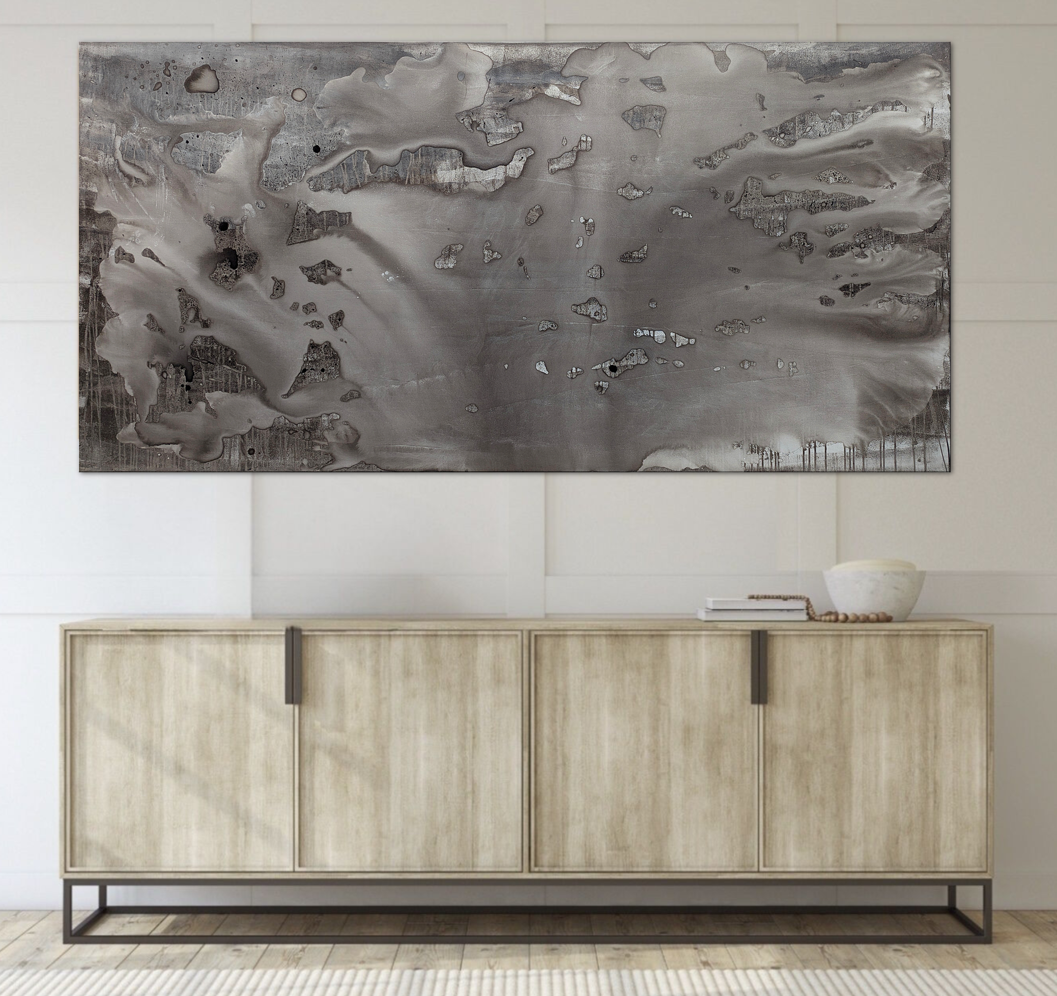 Raw #28 by Emilie Heurtevent is a combination of multiple layers and fine brush strokes made with acrylic, ink and cement. It will fit into most interiors and blends in well with most colour schemes. A great solution to a large size wall.
