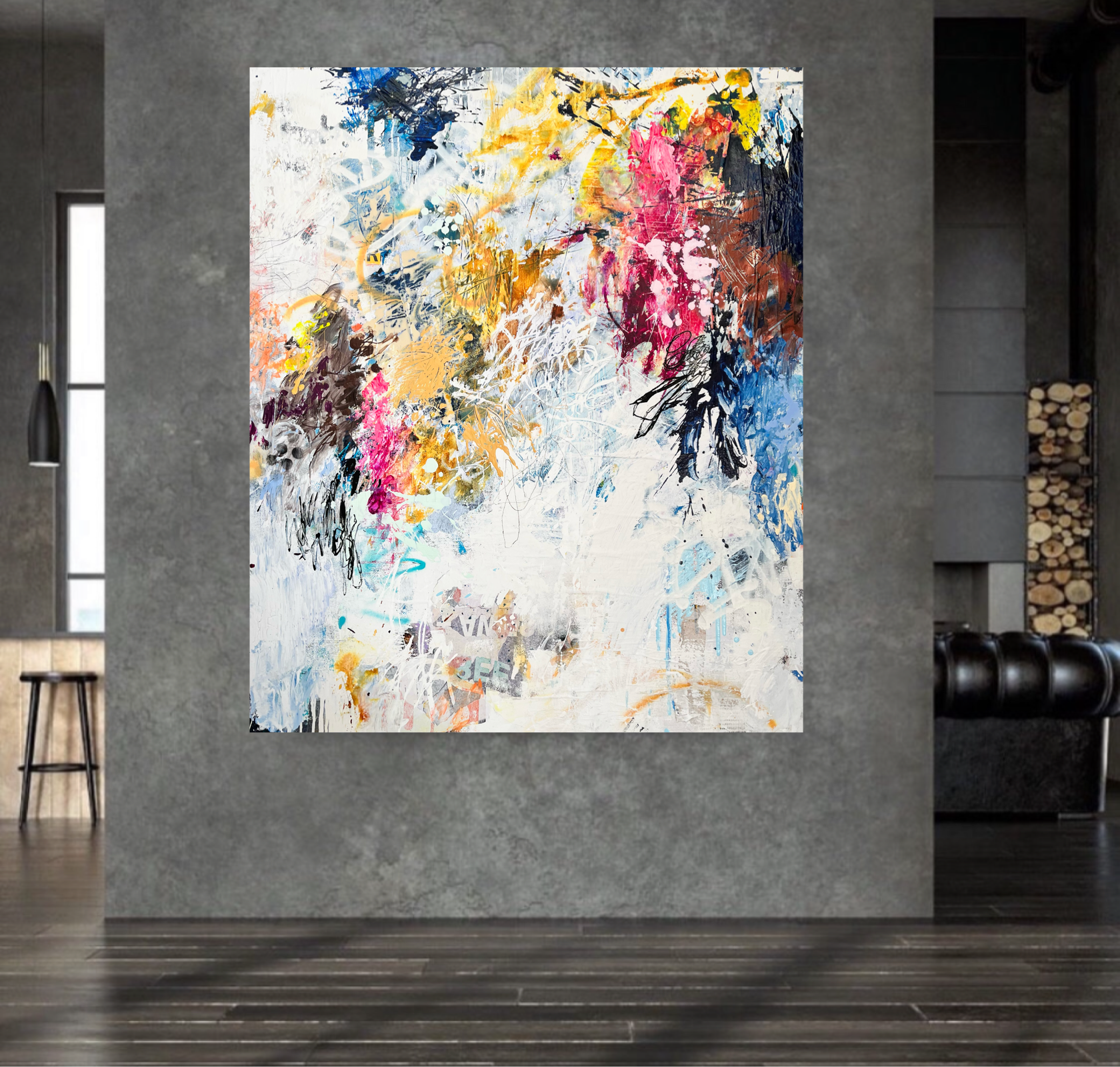 The artwork is a Large Abstract Statement piece and will give maximum impact to any room.
