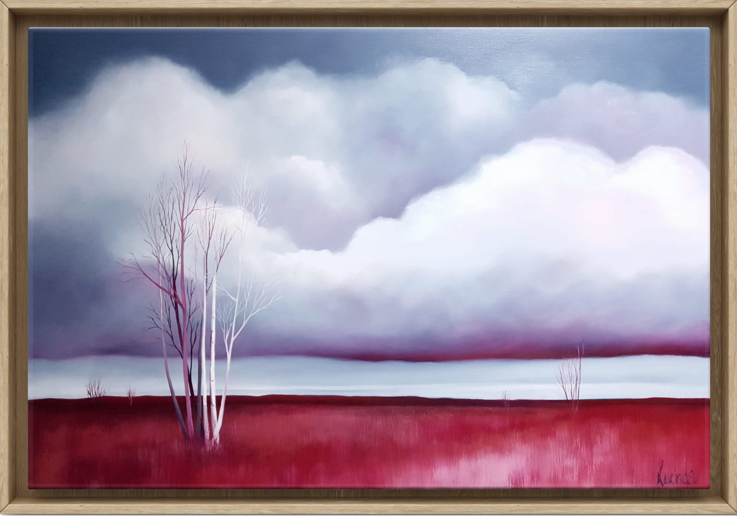 Framed with an oak floating frame – the warm natural tones of oak complement the vibrant colours of the piece. The paint continues around the sides of the canvas and the painting is signed on the front with my name ‘Lucinda’, accompanied by a Certificate of Authenticity.