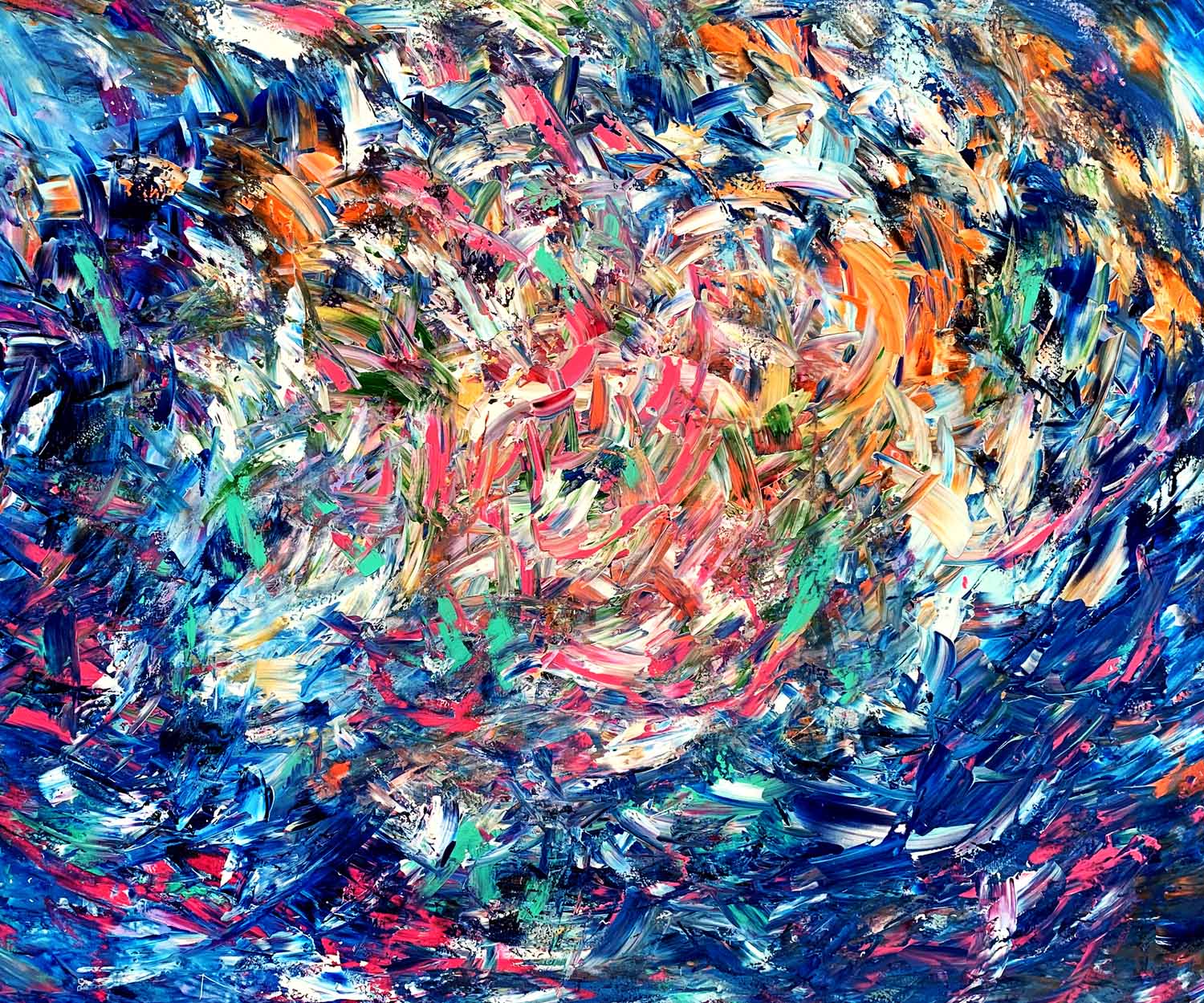 Rebirthing Eye by Estelle Asmodelle – This artwork is about rebirth, with the start of a new year, rebirth is possible in many ways, both emotionally and physically. The work is in the style of abstract expressionism.