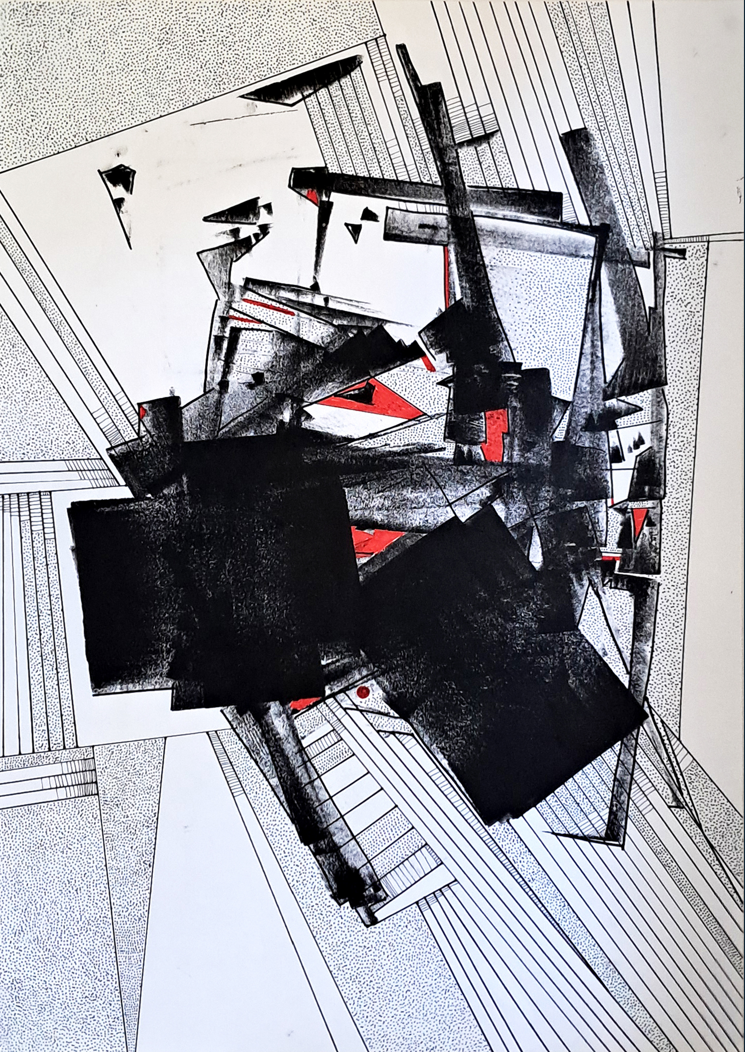 The original white sheet, which was used as a printing substrate and was supposed to be thrown in the trash, is rebirth. Rebirth involves two elements, red and blue, which reunite for the future.
