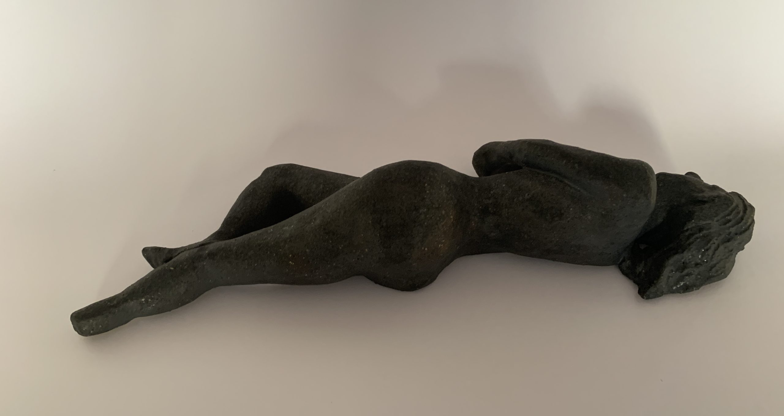 Hand built in a raku clay and glazed in a dark grey flat natural looking copper wash, under lights the pigments sparkle.