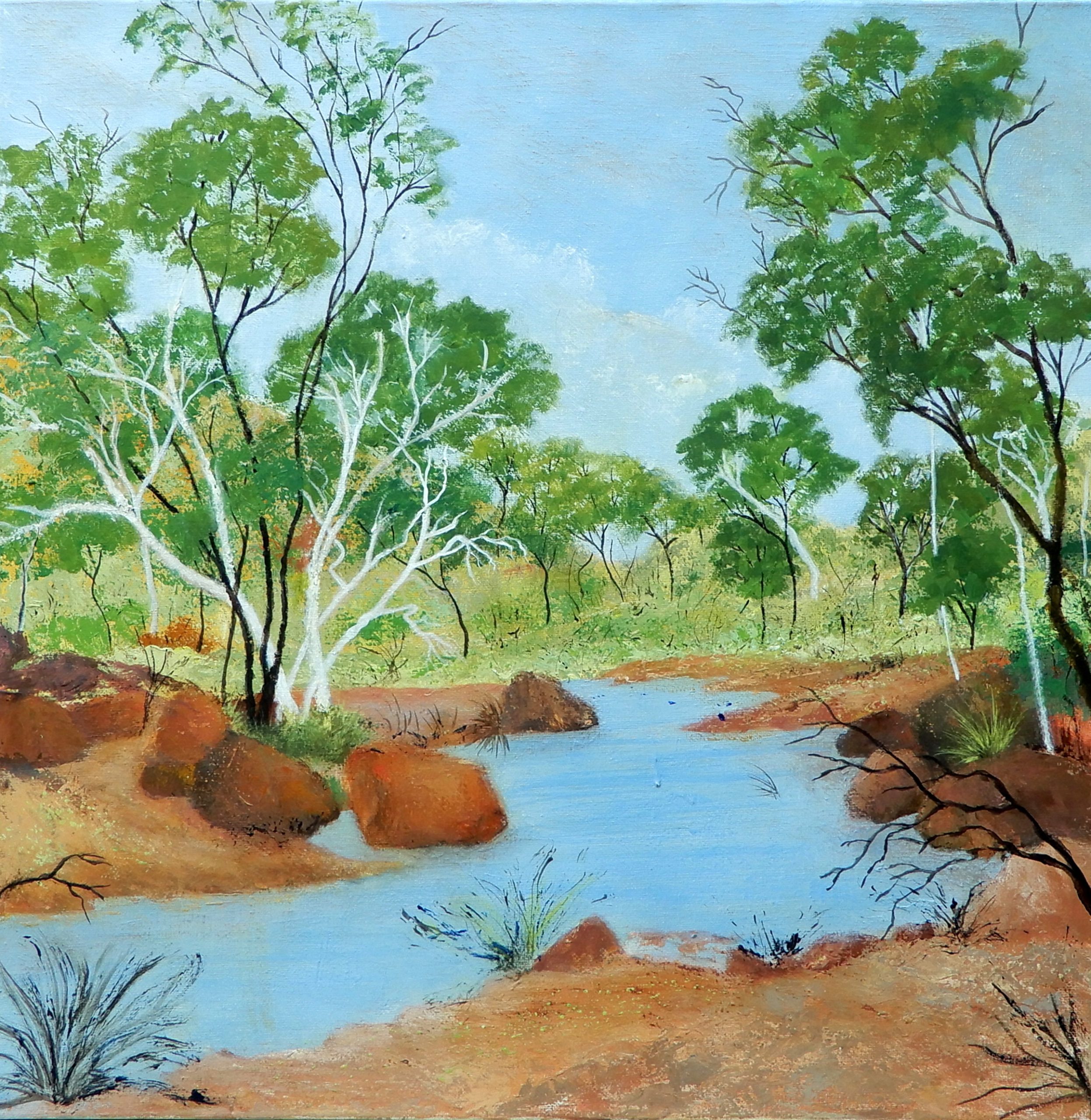 This little creek is at the entrance to a gorge in the Red Centre. I love the colour of the sky reflected in the water against the red rocks and pink sands of the landscape, and how on a really bright day the colours pop.