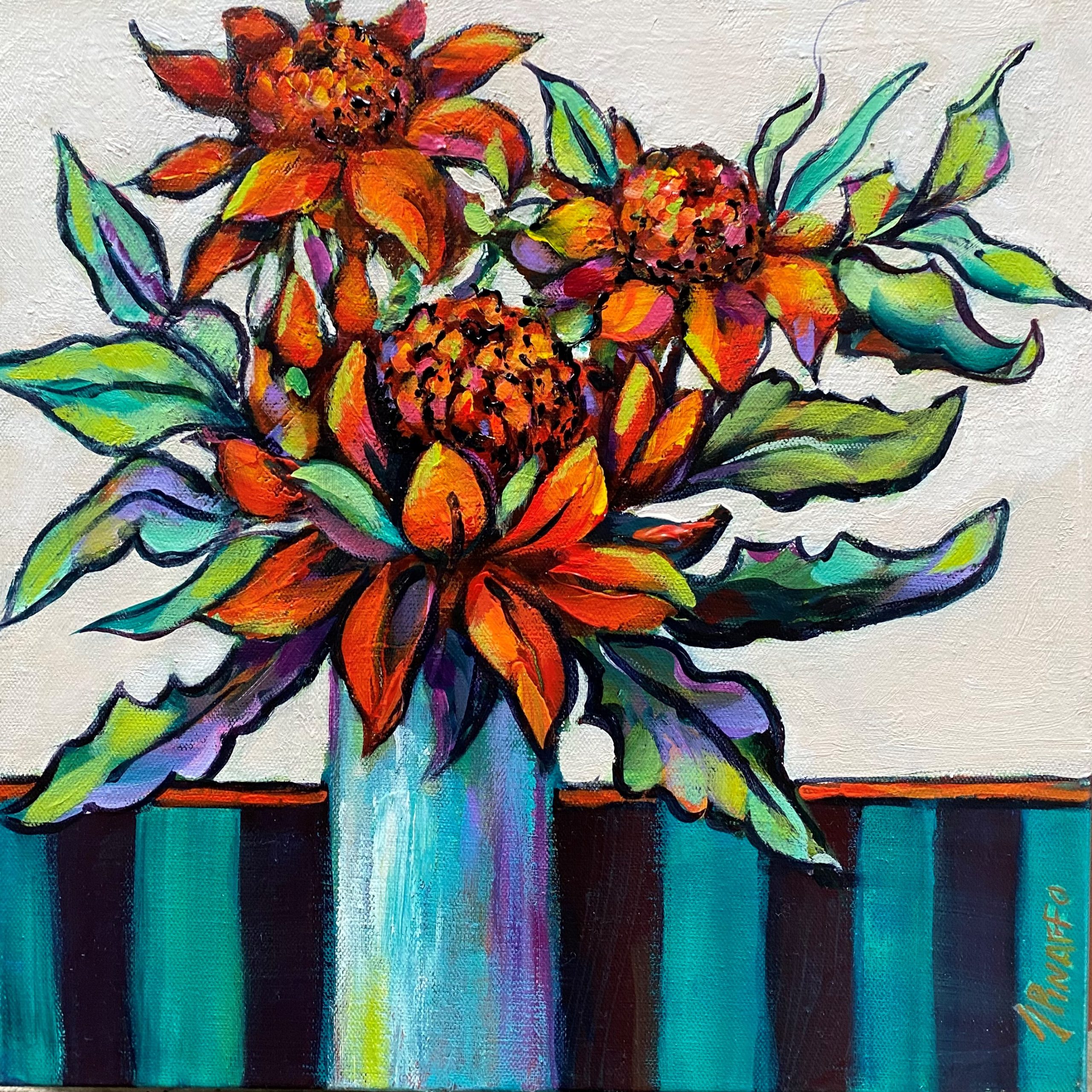 A colorful contemporary creation of red waratahs using my imagination and creativity.