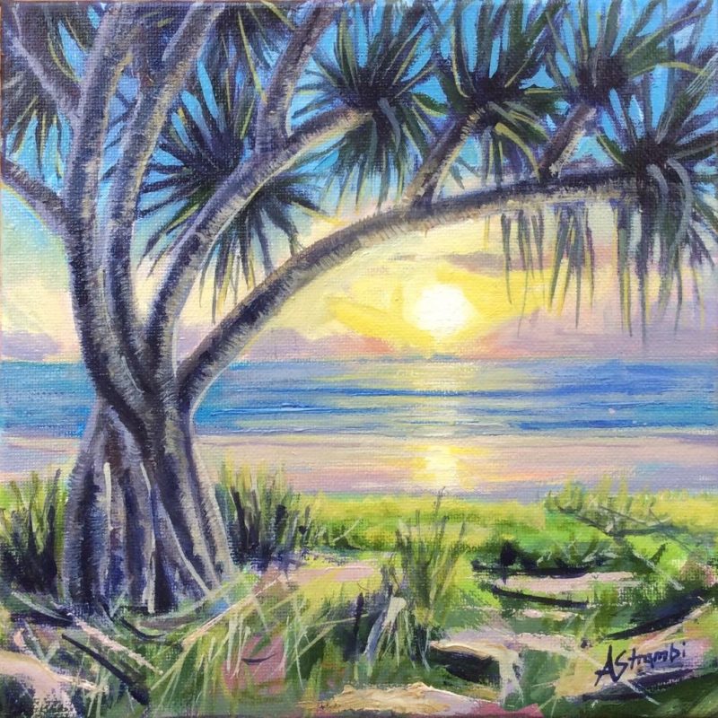 Reef is inspired by the light, the colours and the natural beauty of the Noosa region of Australia. “What I love most about Noosa is the interplay of light. From the oceans to the clouds, to the river estuaries and the hinterland, this canvas unfolds before me every day and finds expression in my paintings”. – Dinah Wakefield
