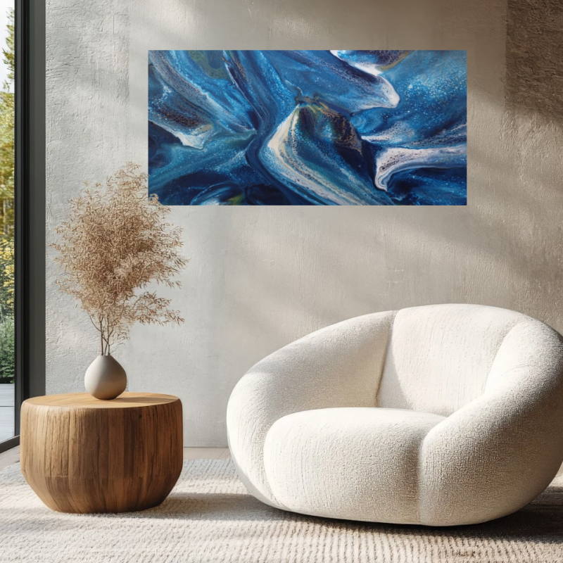 This series of works represents the results of mixing media, with chemistry between pigments creating dynamic compositions as they attract and repel, resulting in interesting intricate formations. These Formations are then preserved by a coating of a premium quality finish (resin, satin or matte Varnish) on a ready-to-hang, multi-directional board.
