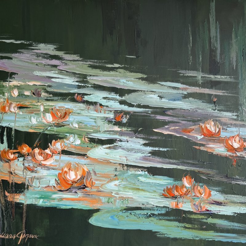 Reef Vase by Cathy Gilday – Although I love to paint on canvas, I really do enjoy the challenge of painting on glass. On many occasions, I have worked on glass or mirrored surfaces. It can be tricky, but I find it very rewarding, as the colours almost float over the surface. The idea that art should only hang on walls doesn’t really sit well with me, so I decided this beautiful glass cylindrical vase, would make the ideal 3D canvas to paint a colourful underwater reef. It has been primed, painted using quality acrylic paints and glass medium, and sealed with protective varnish. The rim has been embellished with gold paint. The artwork makes a lovely table centrepiece, especially lit up with a battery operated table light inside.  Signed Underneath.