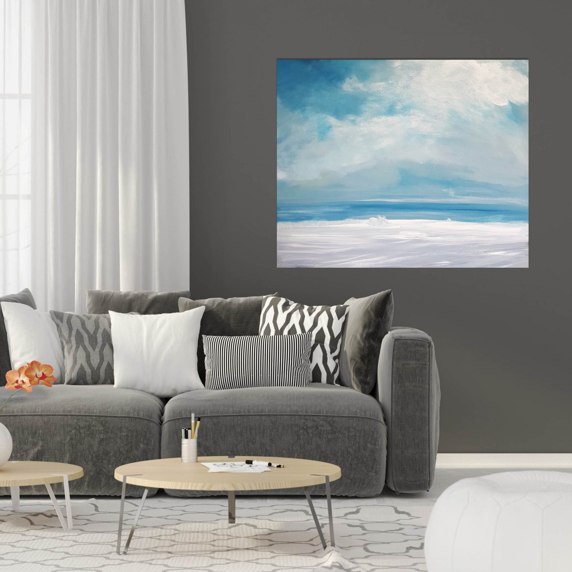 Reef Walk is an atmospheric coastal view with a modern matte protective finish.