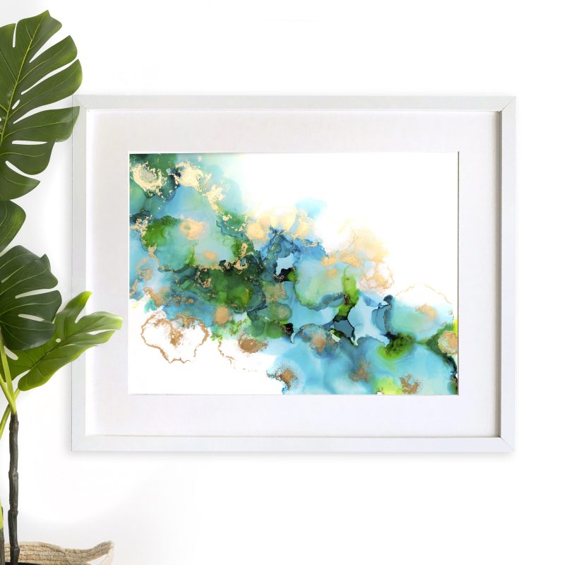 This artwork has been finished with layers of professional grade varnish for extra protection, colour enhancement and a beautiful smooth finish. The metallic paint used reflects the shifting light beautifully really bringing the painting to life.