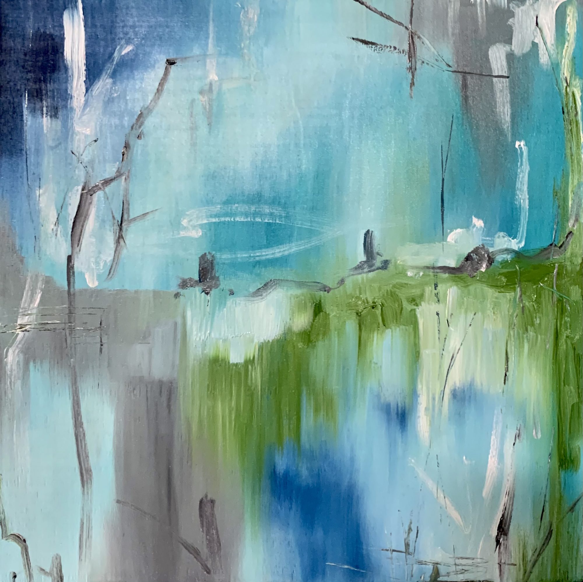 Original abstract artwork. Oil Paint on wooden board, and ready to hang.