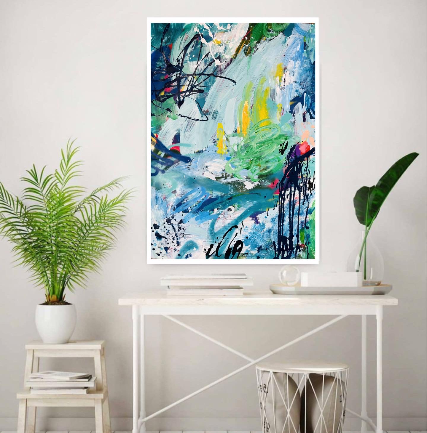 This original painting continues my experimentation with using different techniques to apply the paint. The work was created using Sponges, rags, plastic, scrapers, paint pens, spray packs, in fact anything except brushes.