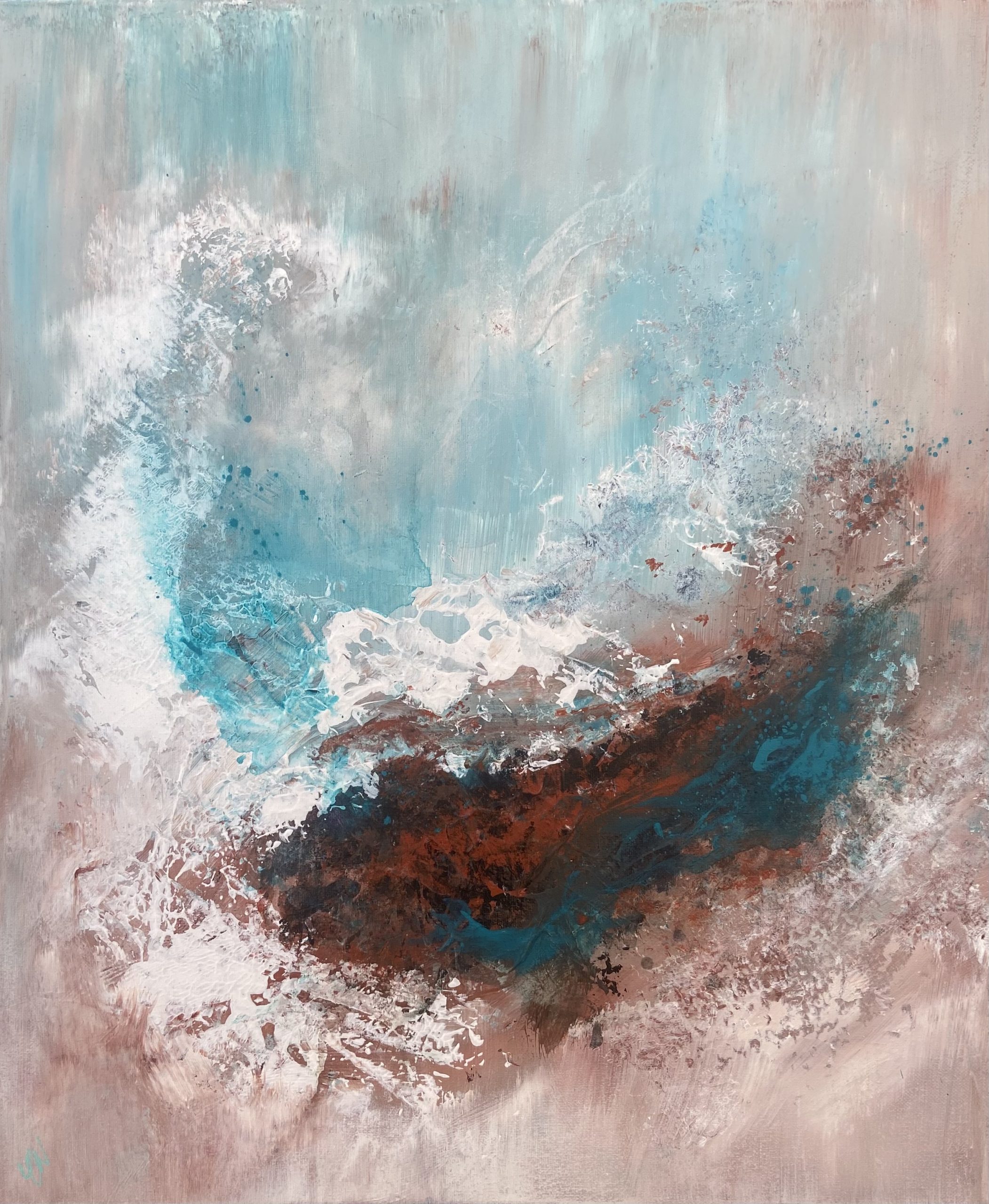 Reimagined by Carrie Welsh is a beautifully textured abstract piece full of captured movement. 60 x 50 cm. Acrylic on canvas, ready to hang. Frame not included.