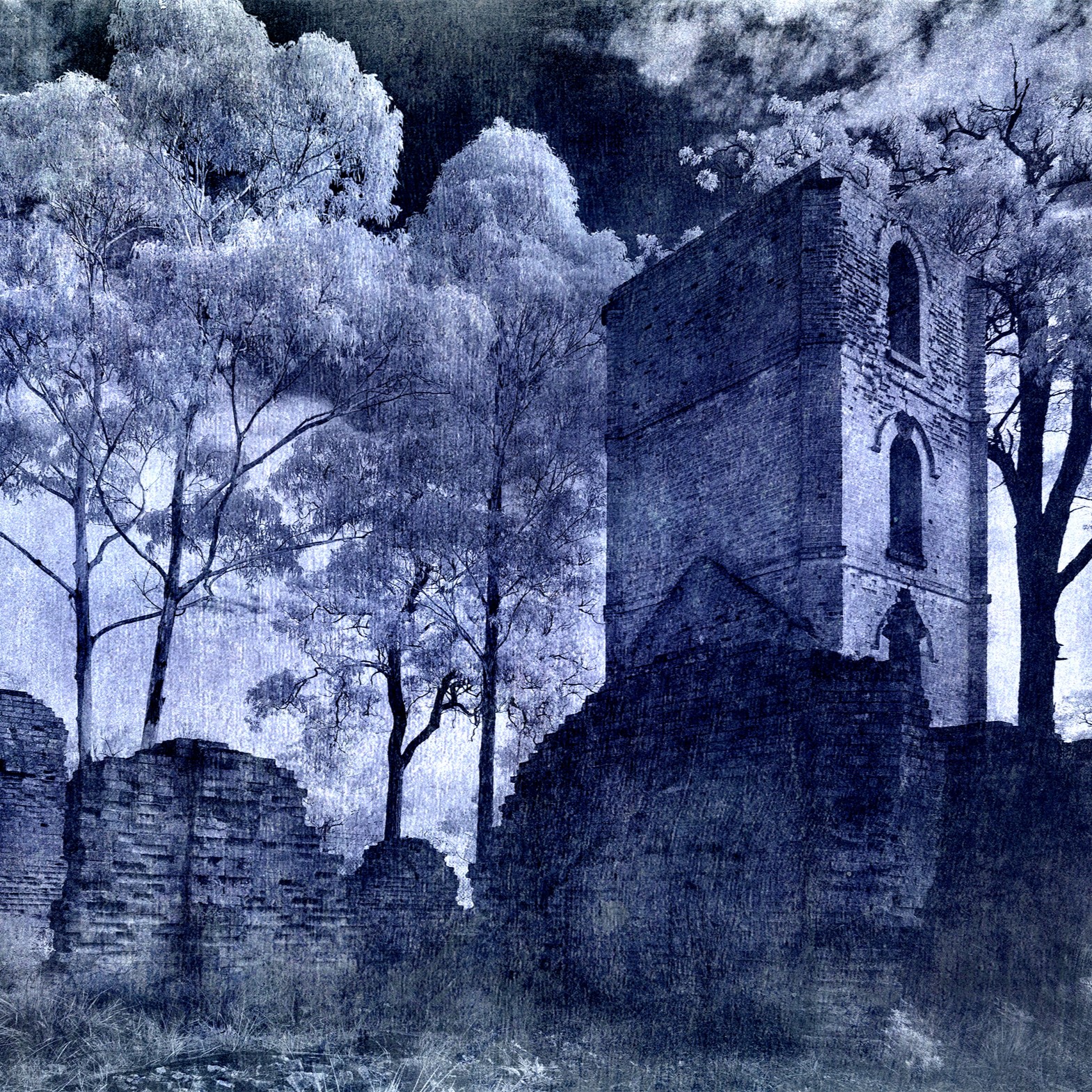 Moody photograph of the ruins of the Boydtown church in southern NSW, creatively rendered to create a unique and eye-catching impression.