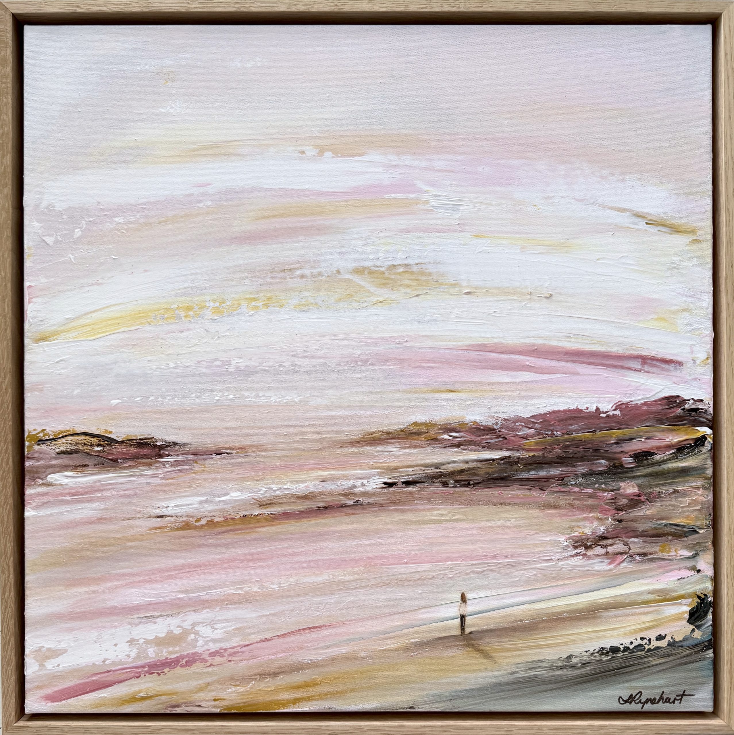 Created with palette knives on 360 gsm stretched cotton canvas, this beautiful soothing beachscape is framed in solid oak, satin varnished and comes with a COA with the above artist statement written on the back.