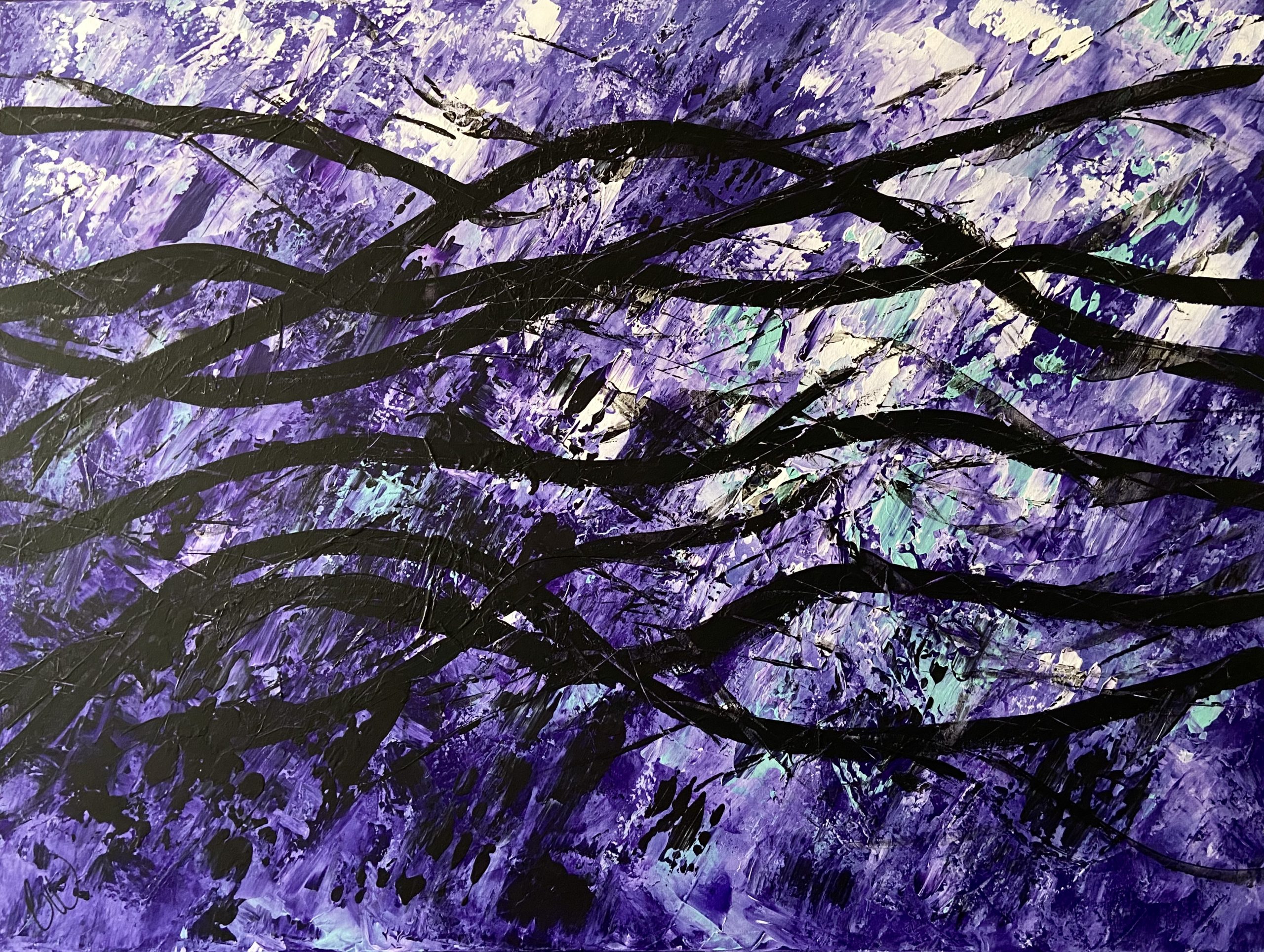Reminiscing by Carrie Welsh is a gorgeous abstract with lots of texture. Beautiful colours and lots of details are in this piece. This will be a focal point of any room. 91.4 x 121.9 cm. Acrylic on canvas, ready to hang.