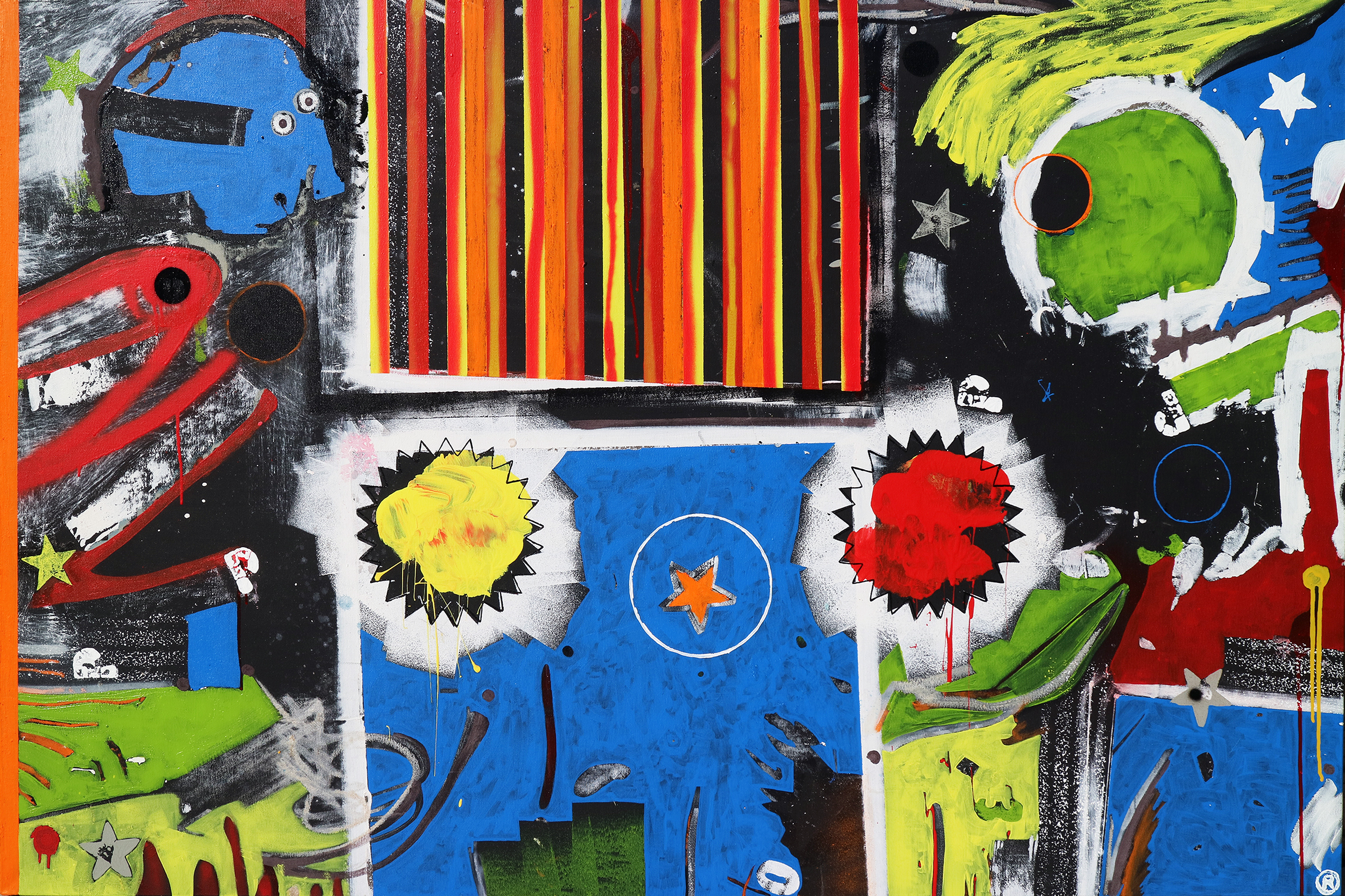 Mixed media – acrylic oil stick and spray paint on canvas