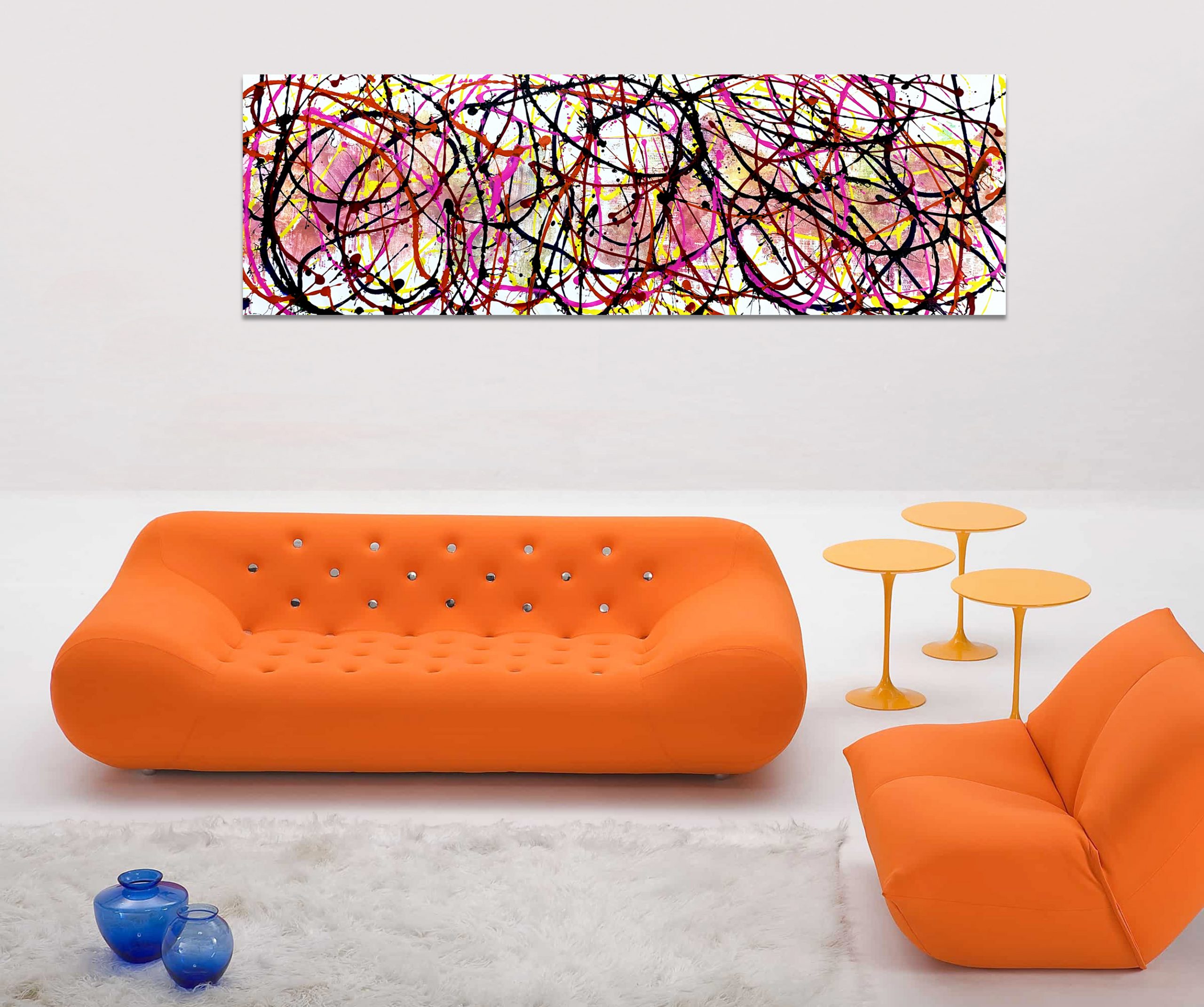 Each canvas is 63 cm (W) x 210 cm (H). The sides are painted in the same manner so no frame is required. The painting was created with Synthetic Polymer on a professional stretcher.