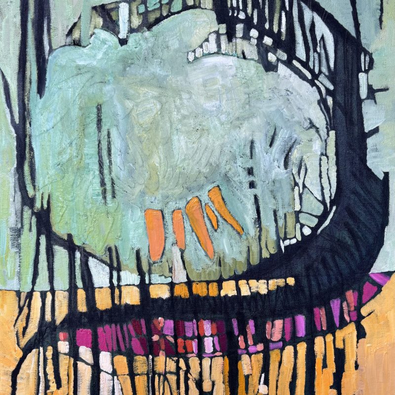Wild, rhythmic and unrestrained, Rexroth drives forward like jazz in paint; sharp lines, loose form, and layers of movement that feel both chaotic and composed. Saturated reds, yellows and greys crash together behind a scaffold of black. A visual syncopation that nods to its namesake, poet Kenneth Rexroth, and the improvisational pulse of the Beat Generation.