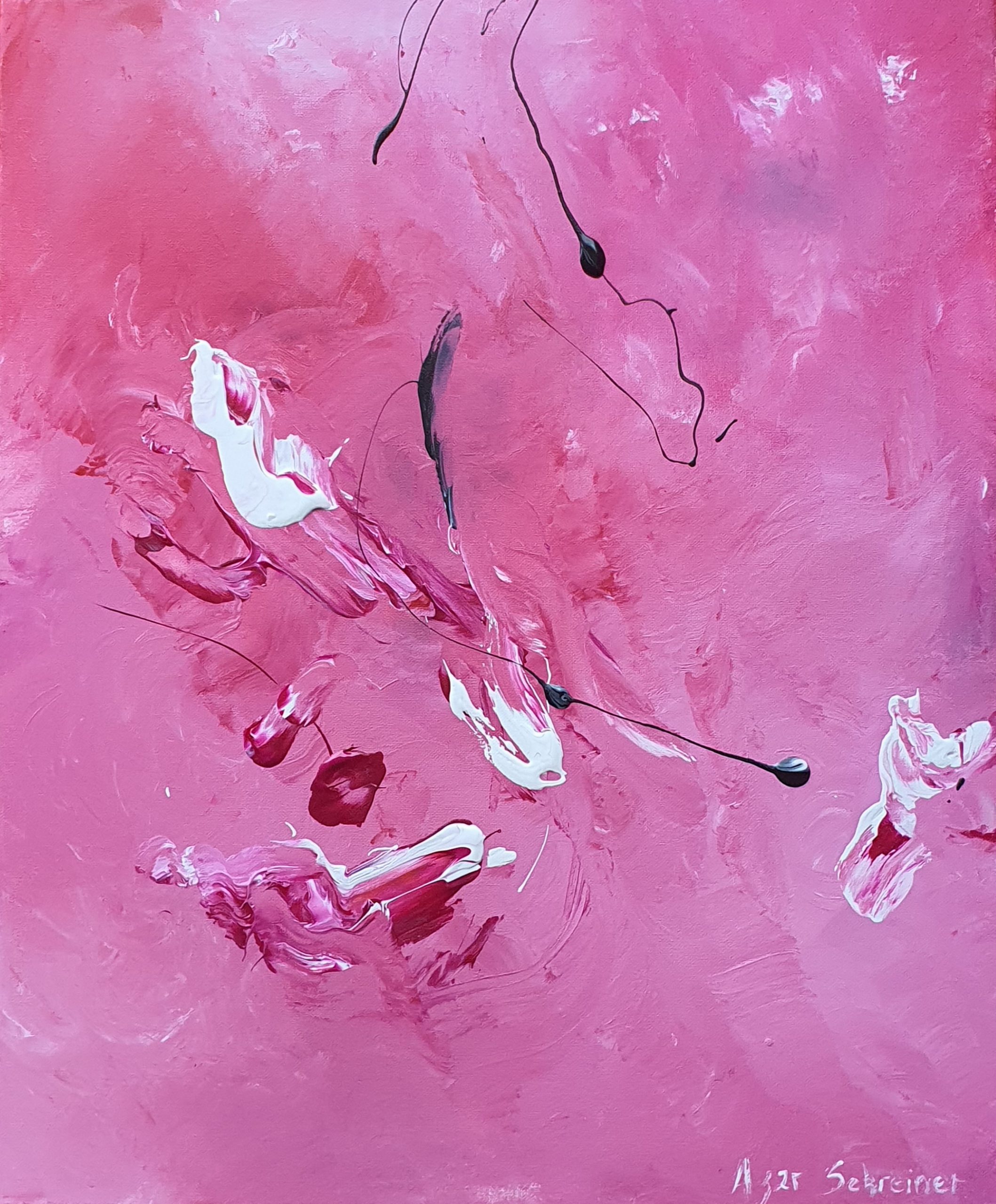 I view painting as sheer passion and feeling. Through my process I don’t seek to depict a set idea or subject, but instead I let scenes and dynamic movement emerge organically.