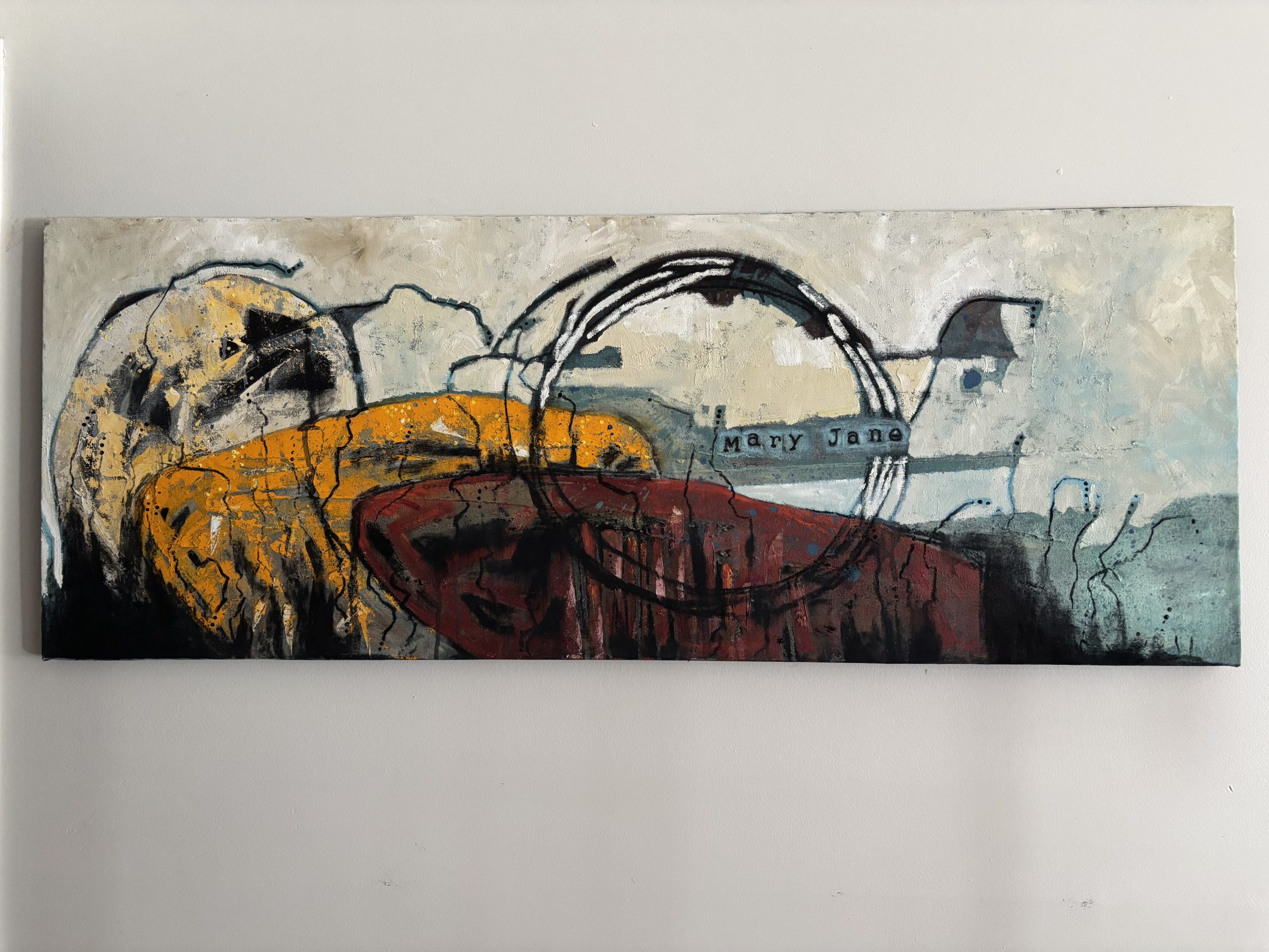 Oil and charcoal on canvas on ply. 119x46cm. Unframed/ready to hang.