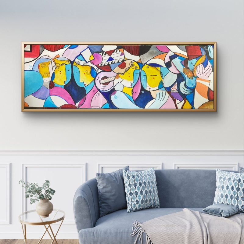 My new piece titled “Rhythm and Blues “displays a vivid burst of colour, this artwork captures the fluidity and joy of abstract forms with emphasis on movement on a deep blue background.