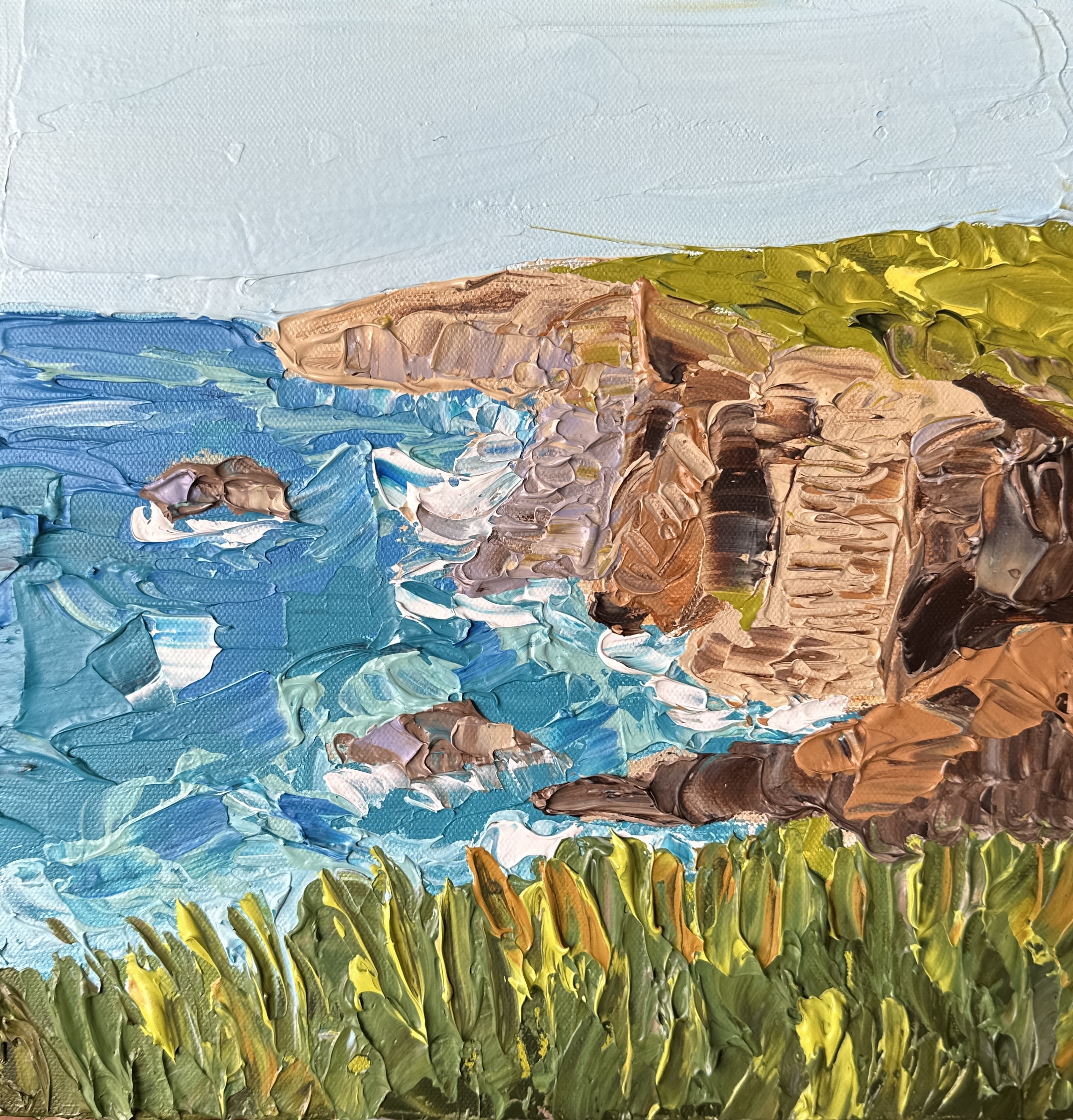 The artist’s masterful use of light and shadow highlights the interplay of forces in this dynamic landscape, creating a visual spectacle that evokes both awe and wonder. This artwork beautifully captures the raw and timeless beauty of a coastal scene where nature’s forces collide and harmonize in captivating harmony.