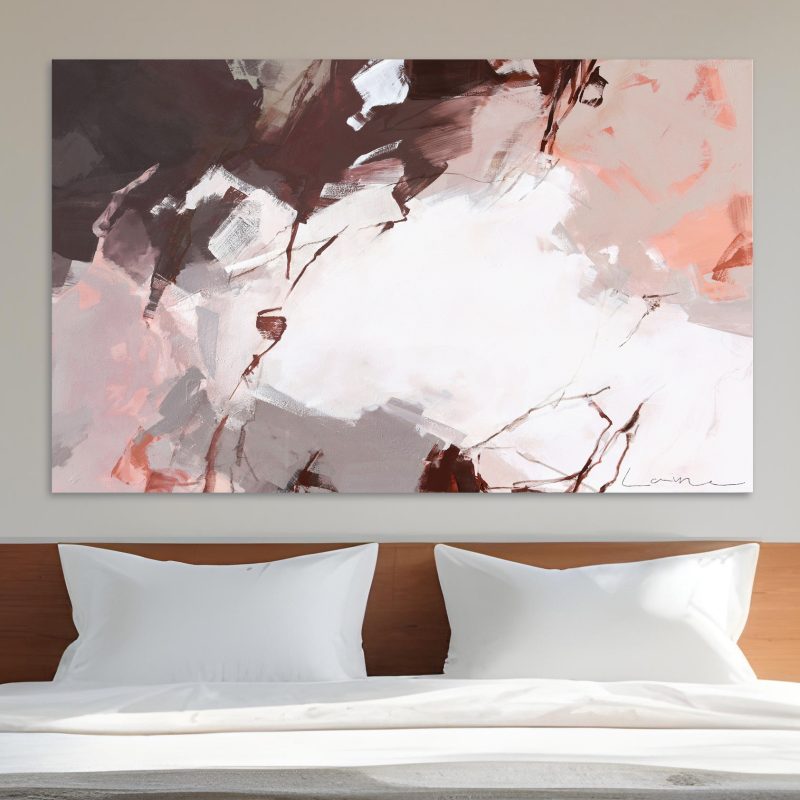 Artwork is finished in artist quality paint on gallery wrapped deep edge linen canvas, stretched over a timber support. Sides clear gesso linen