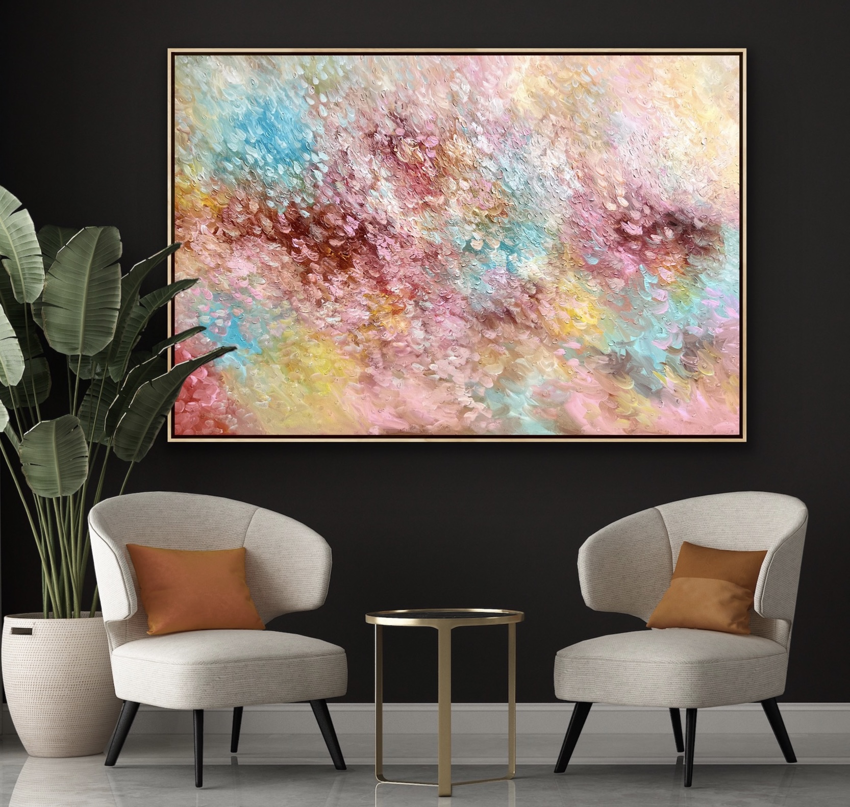 Rising Beauty by Theo Papathomas – a painting with beautiful colours of the Field covering the whole landscape painted with lots of expression and freedom to create movement. Capturing the light of the sun falling on to the petals creating a beautiful bouquet of petals . A composition of colours and rhythms of petals dancing over the landscape swept by the winds . A very peaceful and tranquil painting with so much depth . The painting does not come with an external frame.The painting is signed and dated 2023 at the back and comes with a certificate of Authenticity.