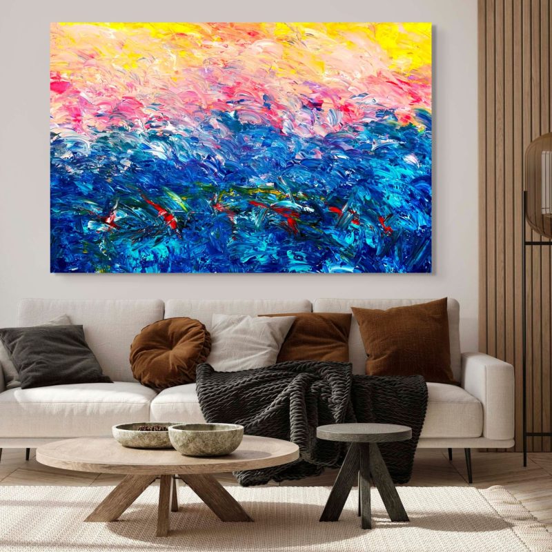 I paint with large brushes and bold loose brush strokes in vibrant colours.