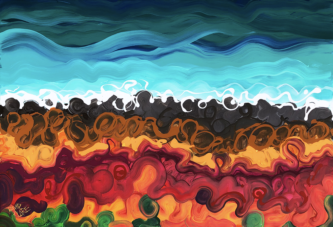 For once, this painting is exactly as I planned.imagined it. An abstract rocky coastline, viewed from above created with flowing swirls of colour, and pure drips of paint for highlights.