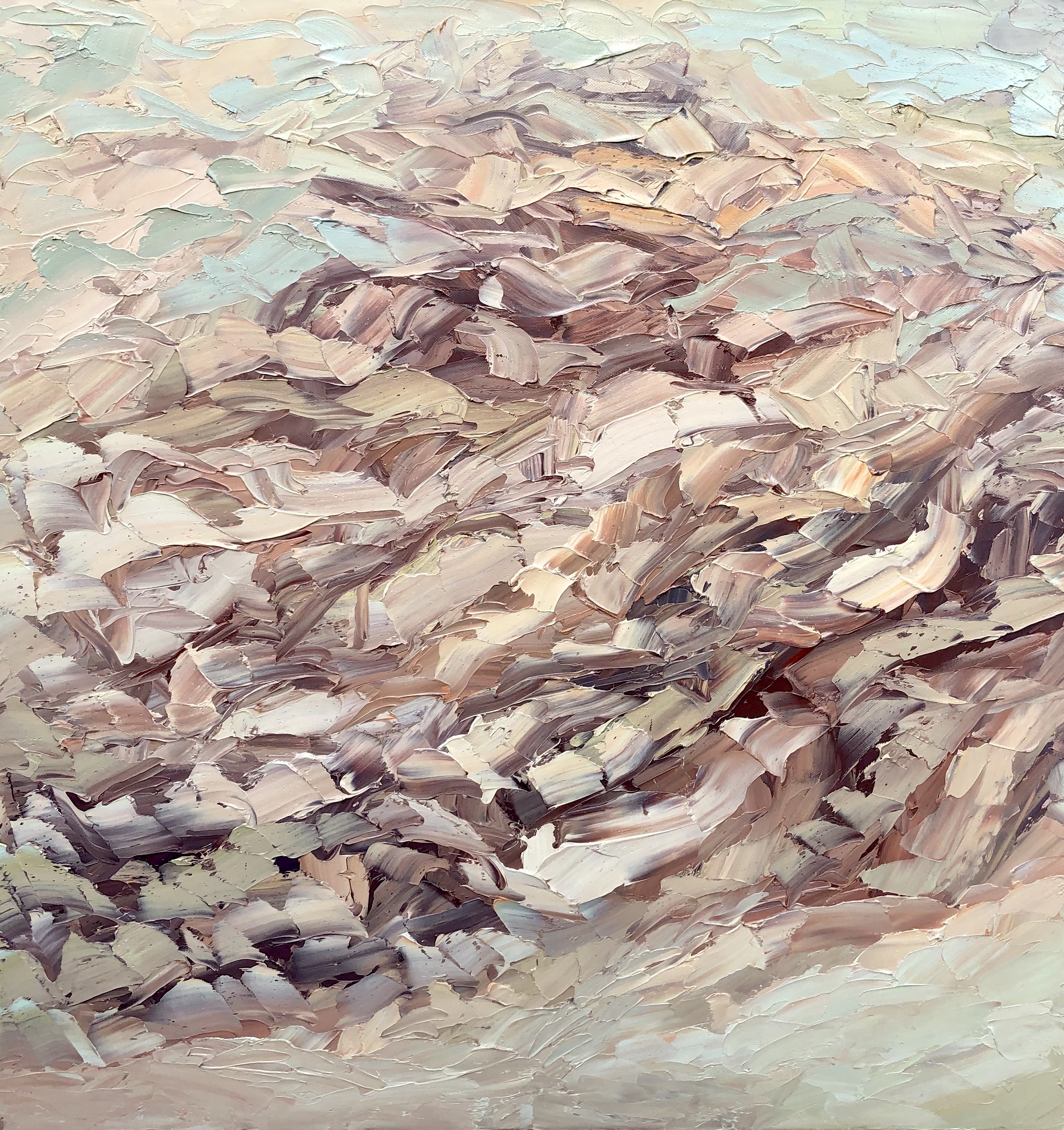 This work was inspired by the Australian landscape in Mornington Victoria close to Red Hill .I wanted to capture the pastel colours of the landscape painted in an abstract, expressionistic way . This artwork was painted with a pallet knife with thick oil paint on canvas . A very painterly painting to capture all its beauty and glory . The painting is signed and dated at the back and comes with a certificate of Authenticity.