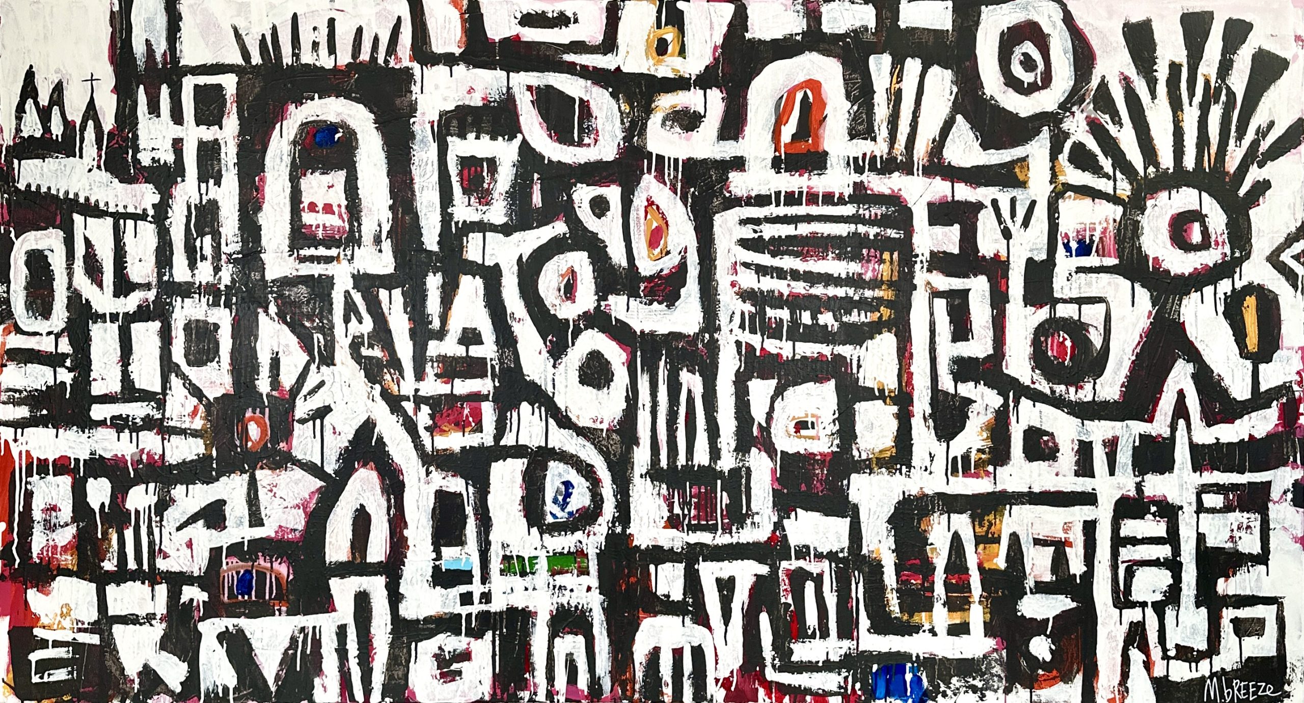 Rodriguez adopts a simplistic palette where layers intertwine, creating highlights and depth to give this piece a sense of journey and movement.