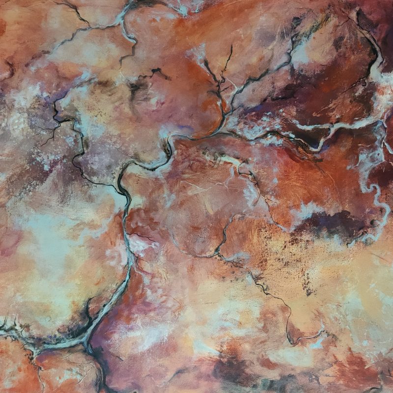 Rolling Sands was created using various techniques combined to allow increased flow, interaction and separation of colours to create interesting patterns where pops of colour can be seen emerging from underneath. This added dimension adds lace and cells to the artwork creating an interesting and one of a kind painting that can never be replicated. A gorgeous variety acrylic pigments were used including metallic yellow & rose gold, bronze, copper, silver, cream, yellow, peach, grey, black and white.
