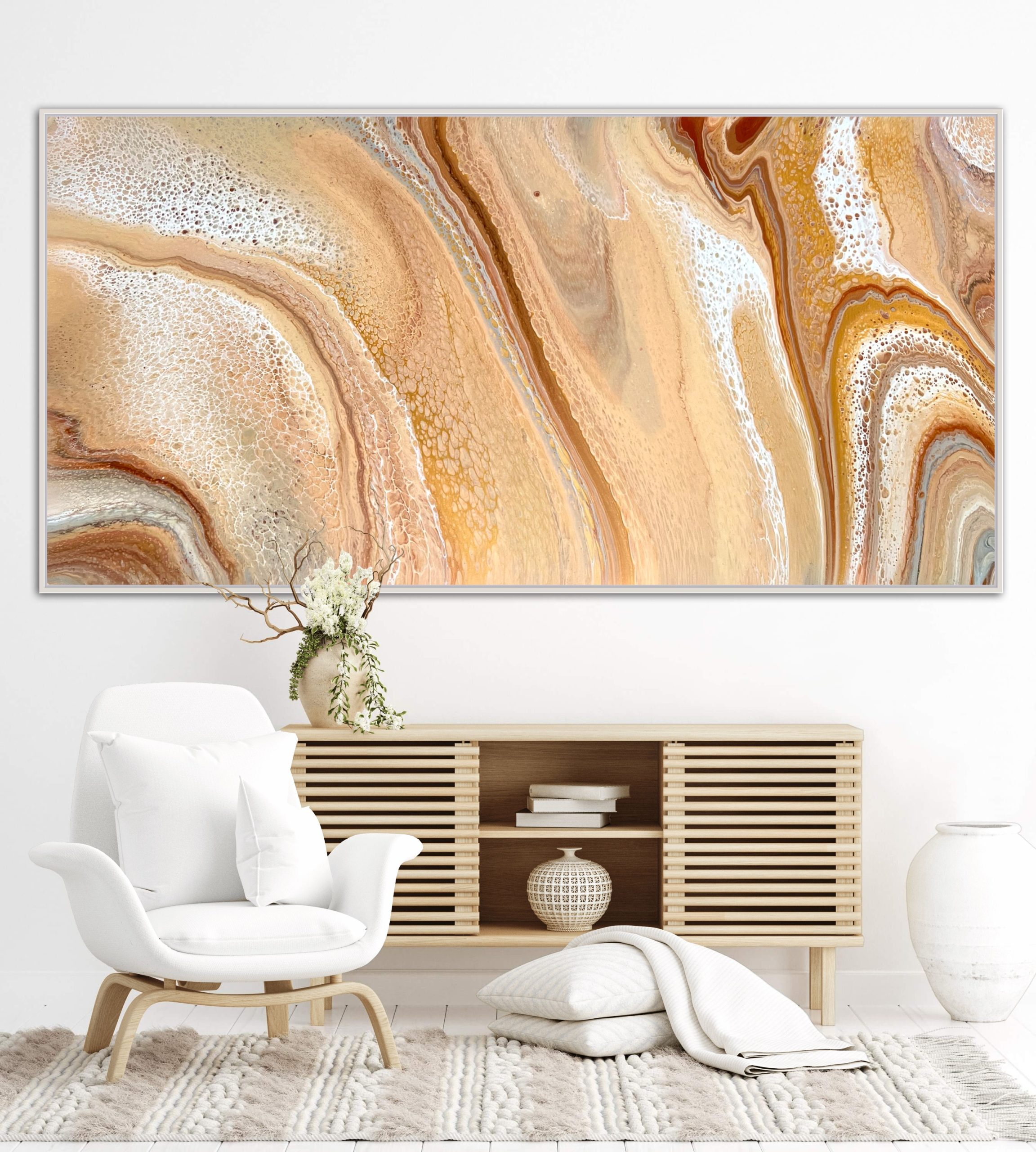 Rolling Sands by Angela Roskell – an extra large multi-directional abstract acrylic painting stretched and ready to hang.