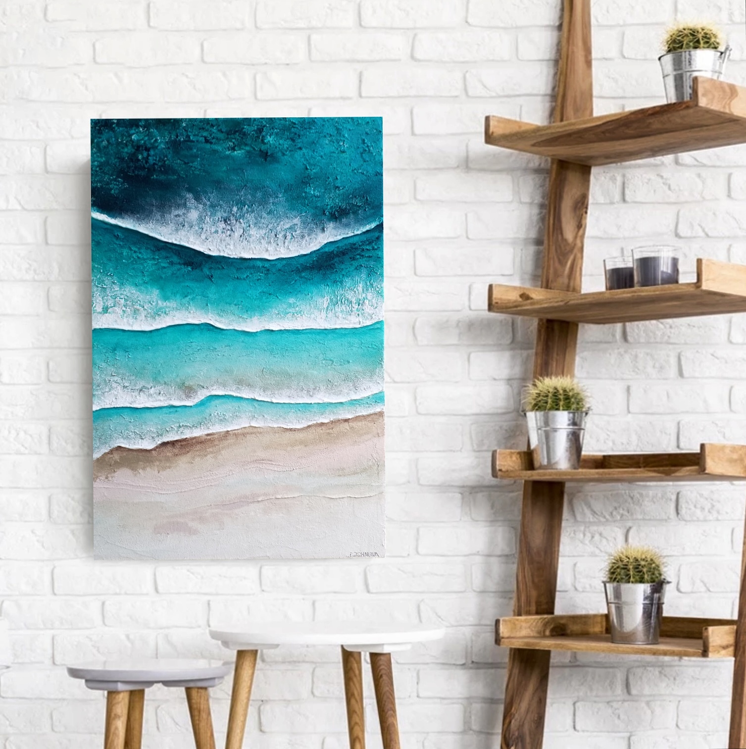 Splushing Waves – mixed media aerial ocean painting