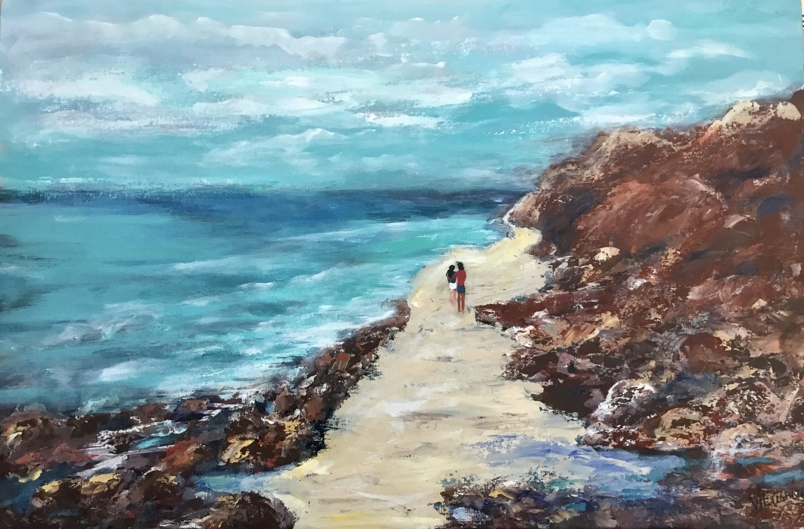 Romance by the Sea by Valerie Eugarde:- This impressionist painting was inspired by the many loving couples I see on our little island of Coochiemudlo, we all need someone to share our joys and our love of nature, a beach stroll is the therapy to the soul and a favourite to all those who love to love and live the best life.