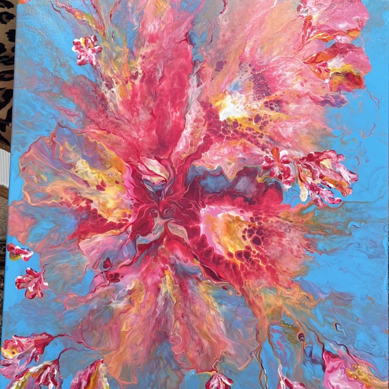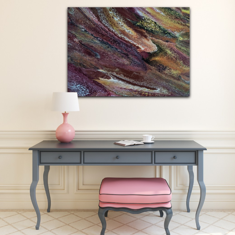 This beautiful modern piece is made with lots of layers of texture and drips of acrylic paint. It was sprayed with varnish for a protection of color. It has a wire at the back and is ready to hang. Singed with certificate of authenticity.