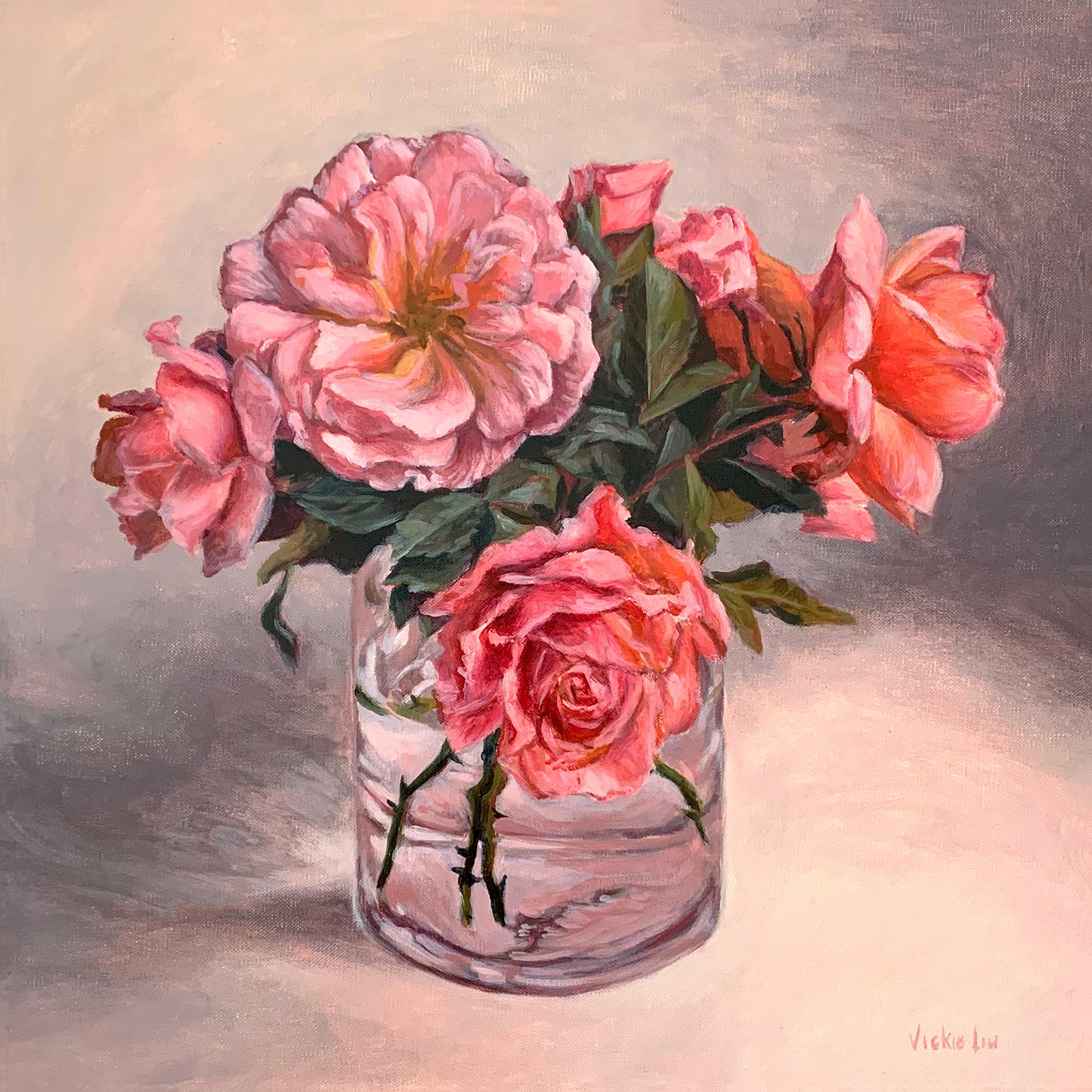 This original botanical artwork was inspired by a bouquet of fresh roses, their sherbet scent and Autumn time.