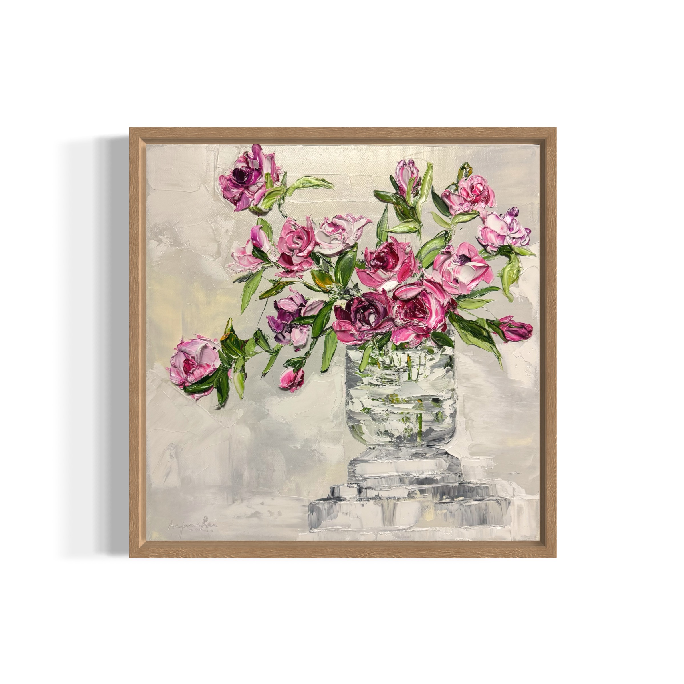The artwork is gloss varnished for protection & is framed in natural oak floating frame, ready to hang.