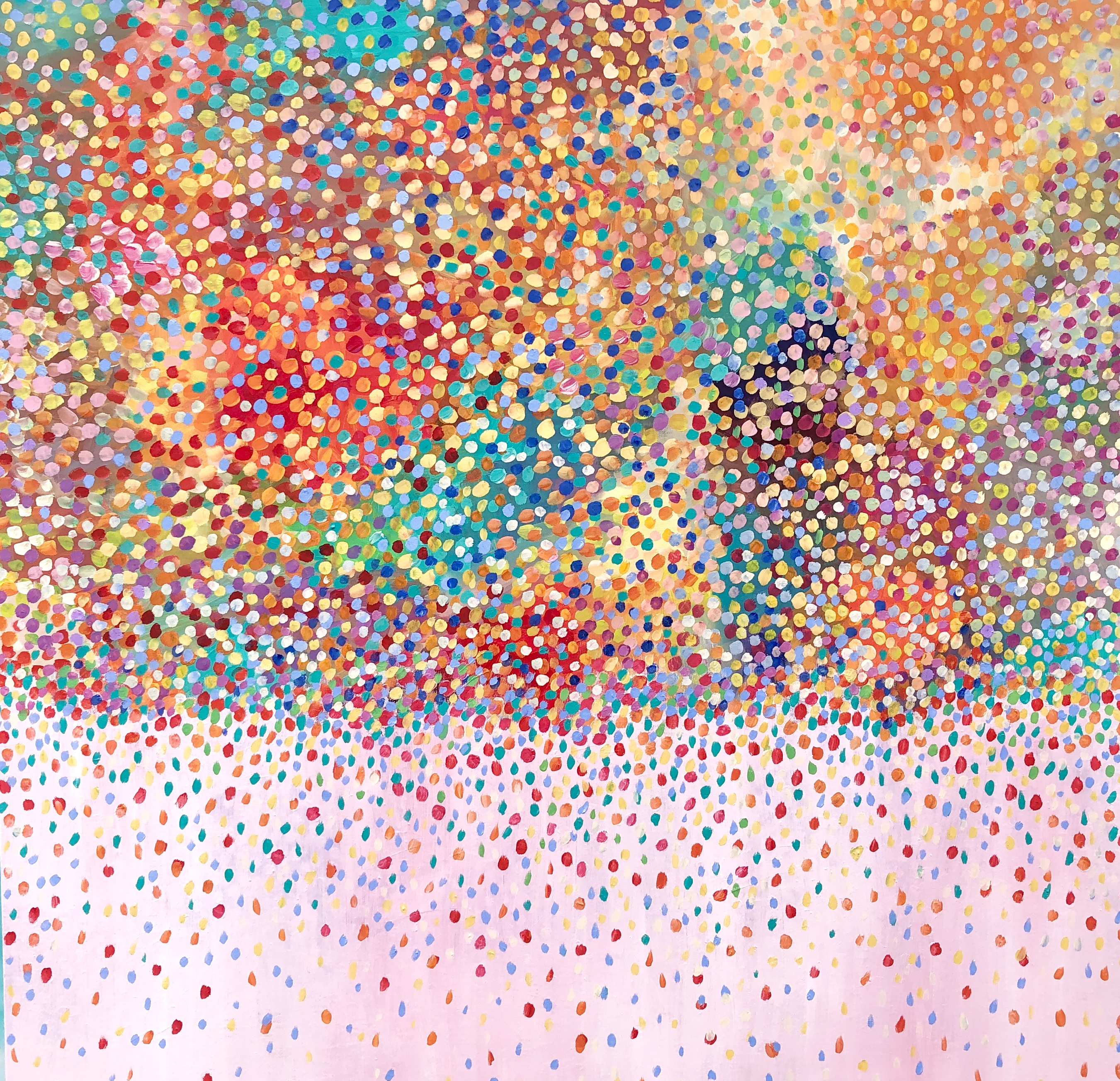 In my painting Royal Flash is a composition of colours and rhythms of petals dancing in the sky . An explosion of petal colours in the sky swept by the winds creating fireworks in the sky. Capturing the beautiful colours of the Rainbow petals falling onto the landscape . This painting is painted with Acrylic paints. The painting is signed and dated 2020 at the back and comes with a certificate of Authenticity.